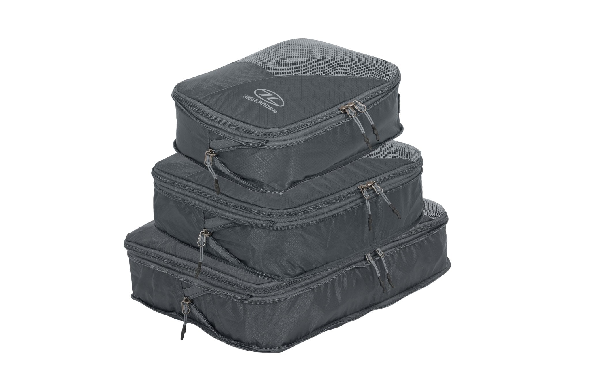 Ein Satz von drei Packwürfeln für die Aufbewahrung auf Reisen. Diese Packwürfel sind ideal für die Aufbewahrung von Gegenständen auf Reisen. Sie passen ordentlich in die meisten Taschen. Sparen Sie Zeit und Stress, wenn Sie wissen, dass alle Ihre Sachen ordentlich verpackt sind.