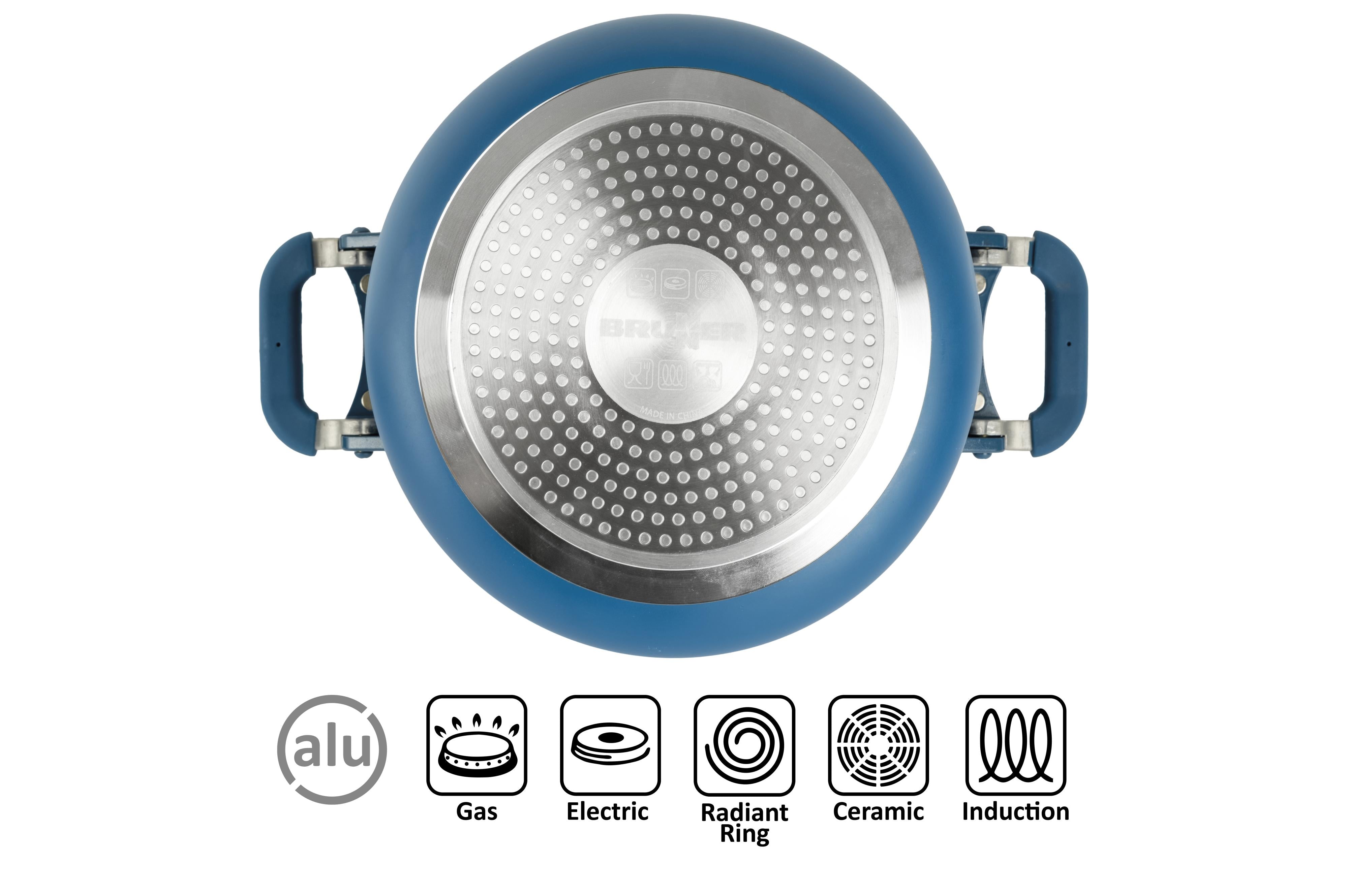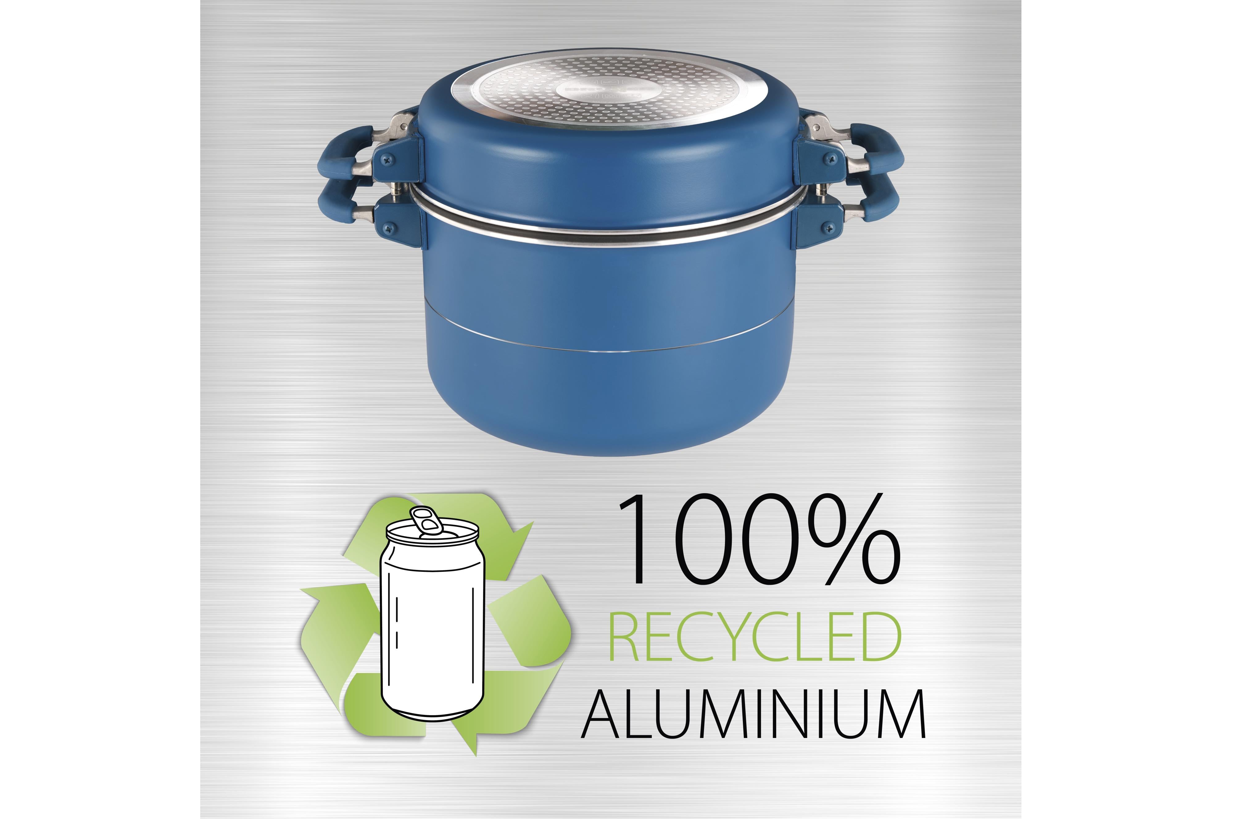 | Inhalt | Kochtopf Ø 22 cm H 14,5 cm, Pfanne Ø 22 cm H 8 cm, Pfanne Ø 20 cm H 5 cm, Kochtopf Ø 18 cm H 8 cm, Glasdeckel Ø 22, Glasdeckel Ø 22 / 20 / 18 cm, 1 Griff |