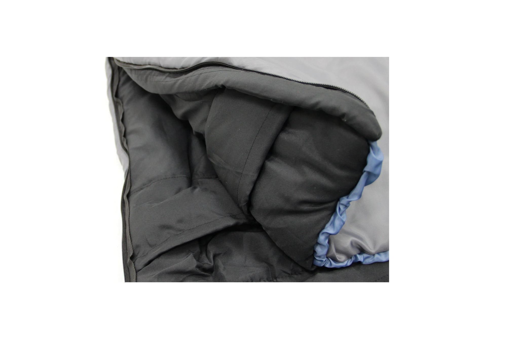 The Annjuk Sitka 1500 is a double-layer sleeping bag with a wide shoulder width of 80cm and a length of 230cm. This makes it well-suited for taller users, offering plenty of space and comfort. The layers consist of two separate insulation layers with a total fill weight of 300g/m². The brushed pongee polyester lining feels soft and comfortable, dries very quickly, and is easy to care for. The side zipper can be opened all the way down, allowing for excellent temperature regulation. This sleeping bag is ideal for three-season use from April to October. The Holofibre insulation provides good, comfortable insulation for a restful night's sleep. The sleeping bag features a practical inner pocket, an adjustable rounded hood, and, of course, the essential anti-snagging band. This prevents the zipper from getting caught in the fabric.