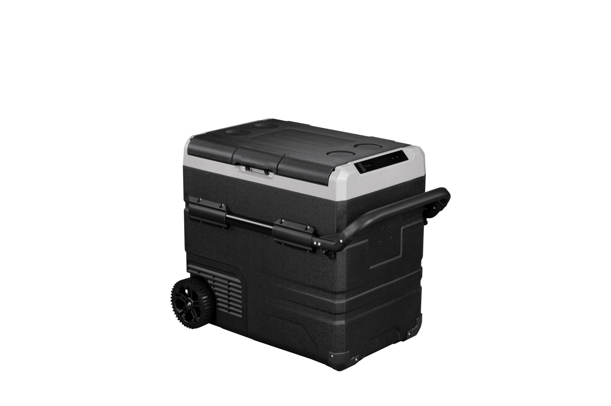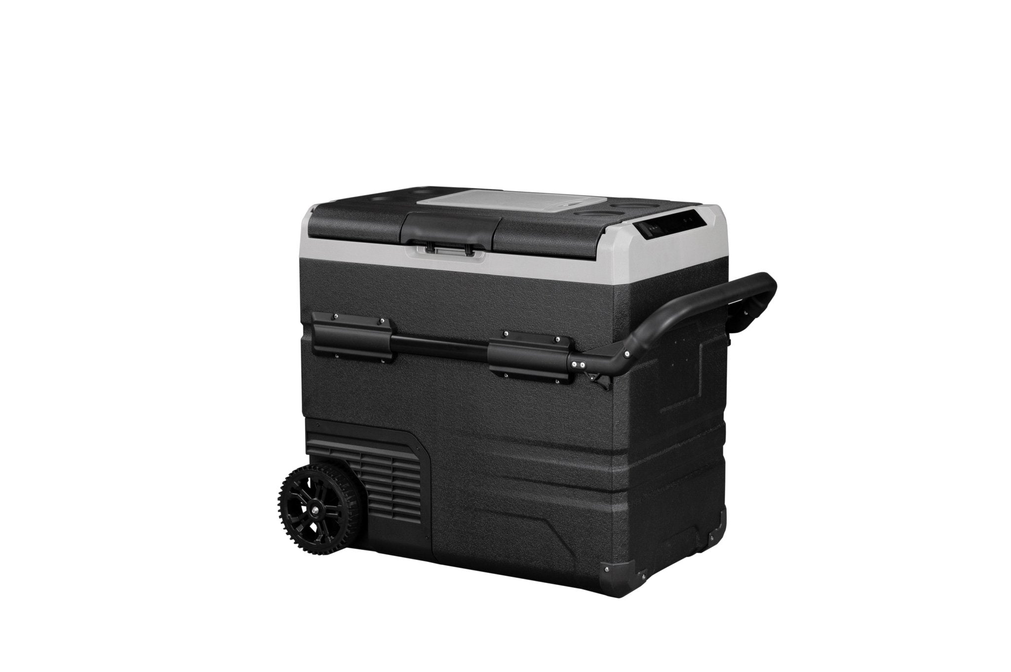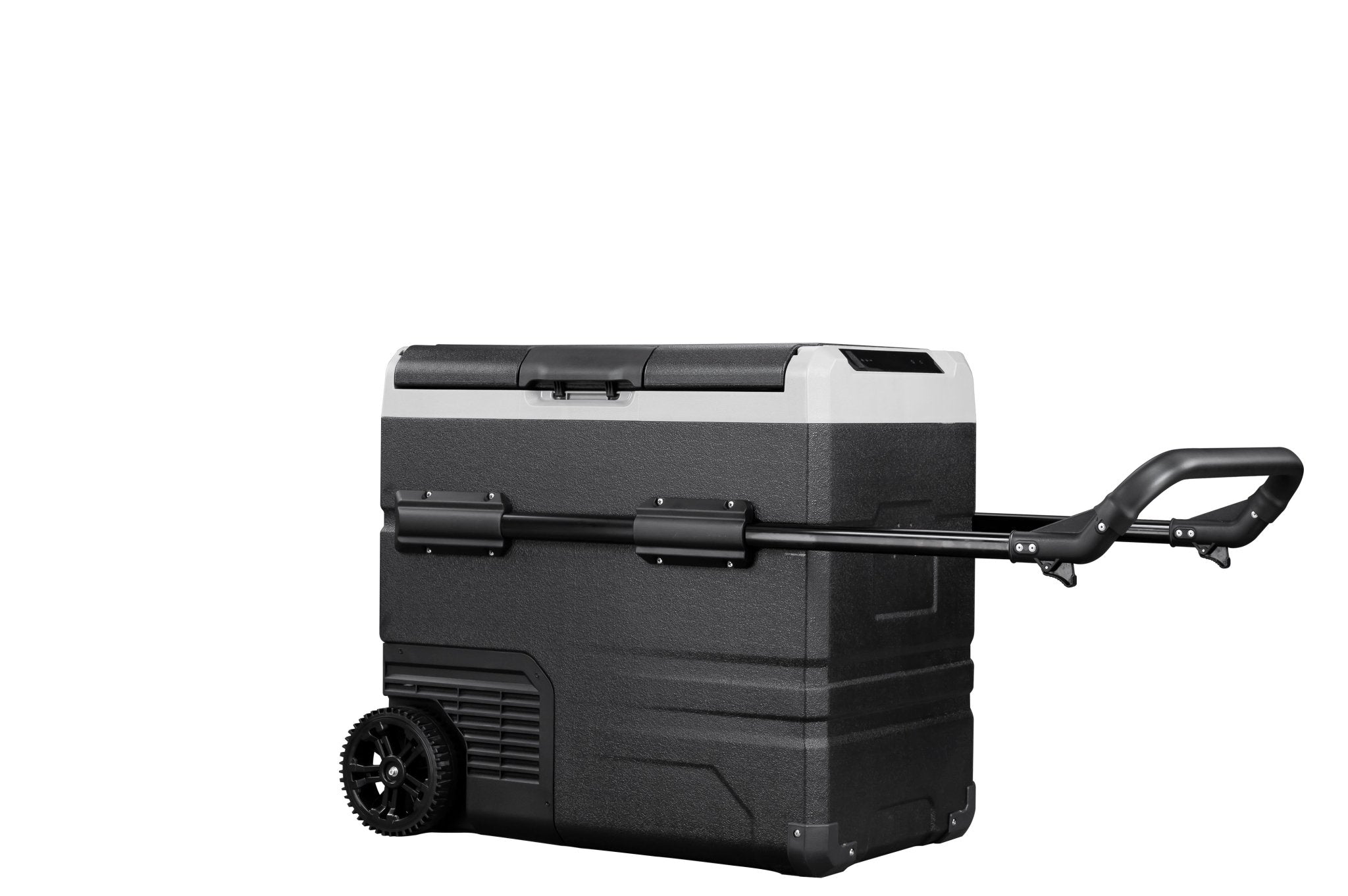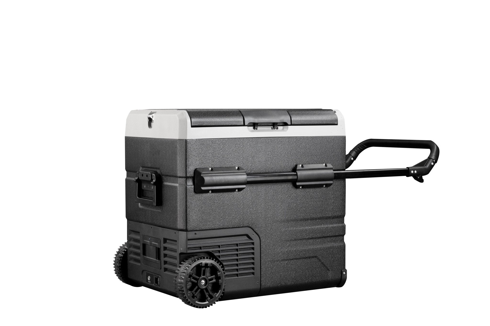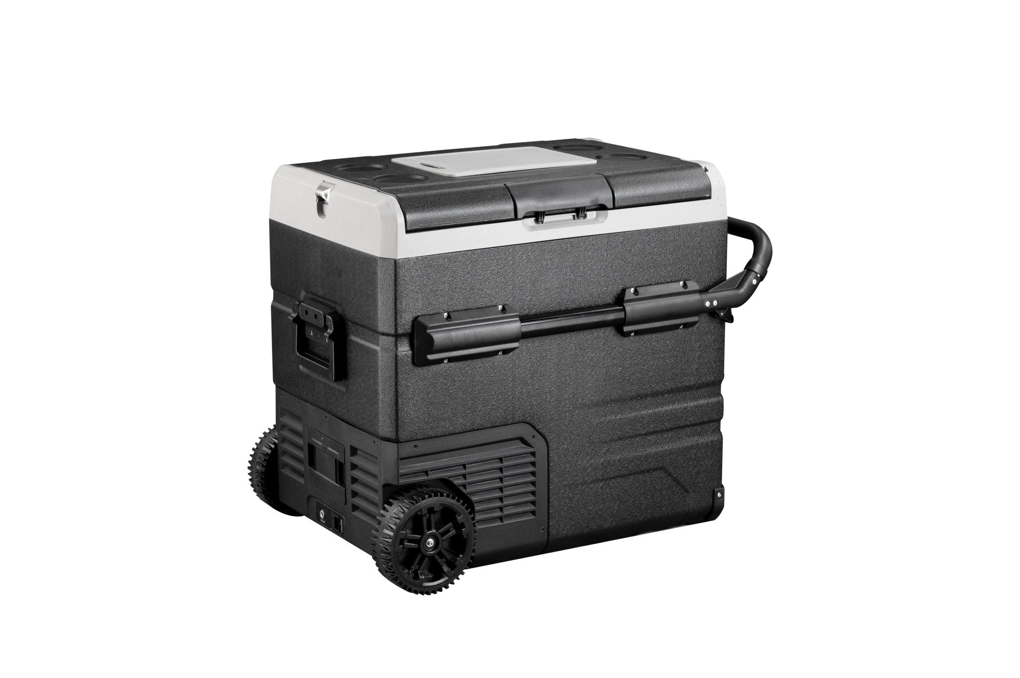 The Annjuk by Alpicool TWW55 portable car refrigerator with freezer compartment has a 55-liter capacity and is suitable for storing food and other items. The cooler can be powered by the included removable battery or via mains electricity. Thanks to its advanced cooling technology, the Annjuk by Alpicool TWW55 car refrigerator cools down to 0°C in no time. All coolers in the Annjuk by Alpicool T-series car refrigerators utilize advanced LG cooling technology (high-efficiency DC compressor and conversion module). With the freezer function, the cooler can even reach a frosty -20°C (based on an ambient temperature of 25°C). The compartment is divided into two sections, each with its own temperature setting. The compartments also include a wire mesh insert. Inside the cooler, LED lights automatically illuminate when the lid is opened. For more efficient performance, the cooling walls are fully insulated. The intelligent battery protection prevents the vehicle battery from running out. The cooler is CFC-free and comes with a DC12/24V or AC 100~240V (with appropriate adapter) power connection. Transport wheels, a folding handle on one side, and a telescopic handle on the other make moving and transporting the cooler easy. The TWW55 comes with an integrated cutting board and bottle opener, making it the perfect companion for outdoor adventures, camping trips, road trips, or picnics.