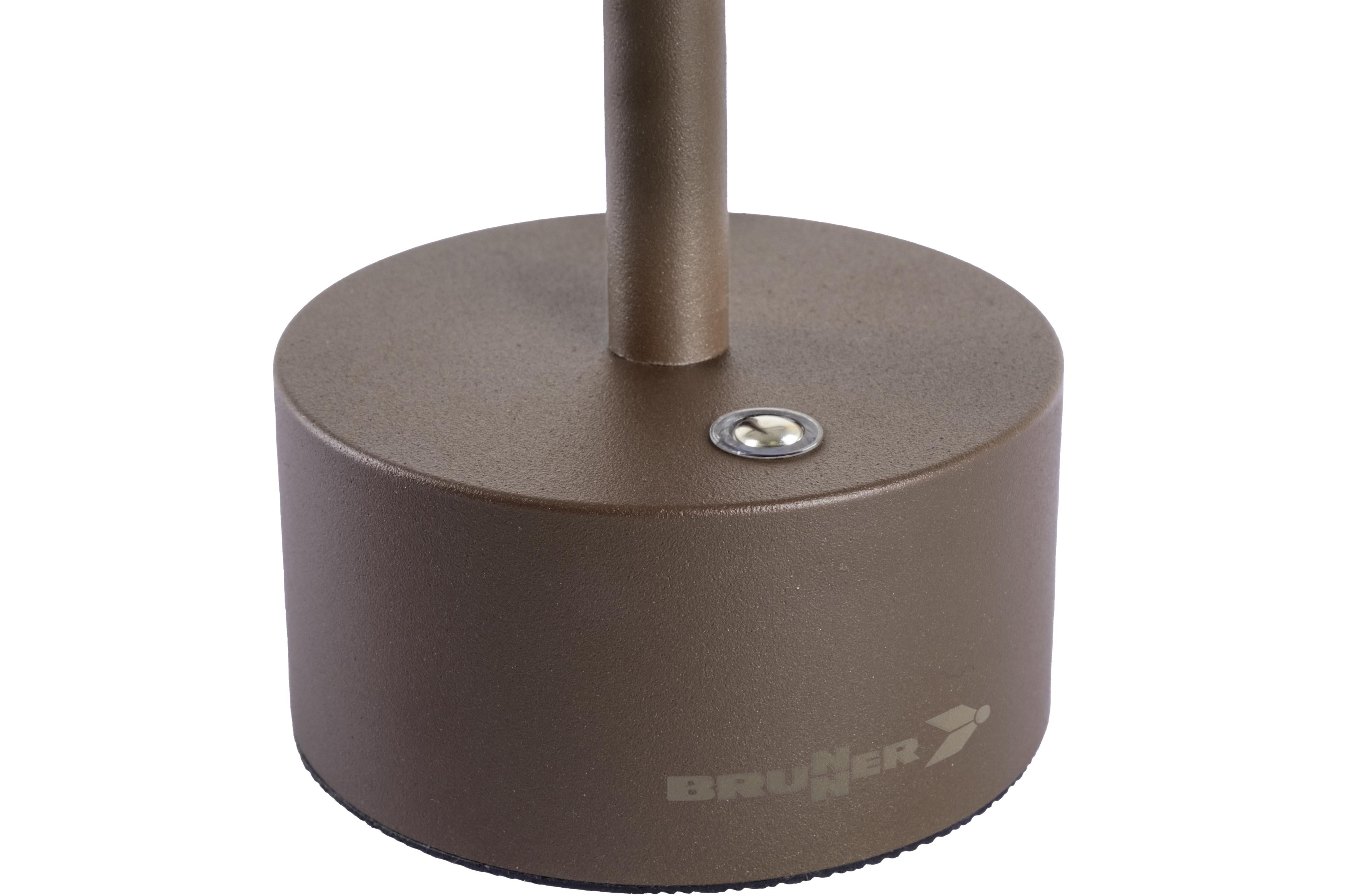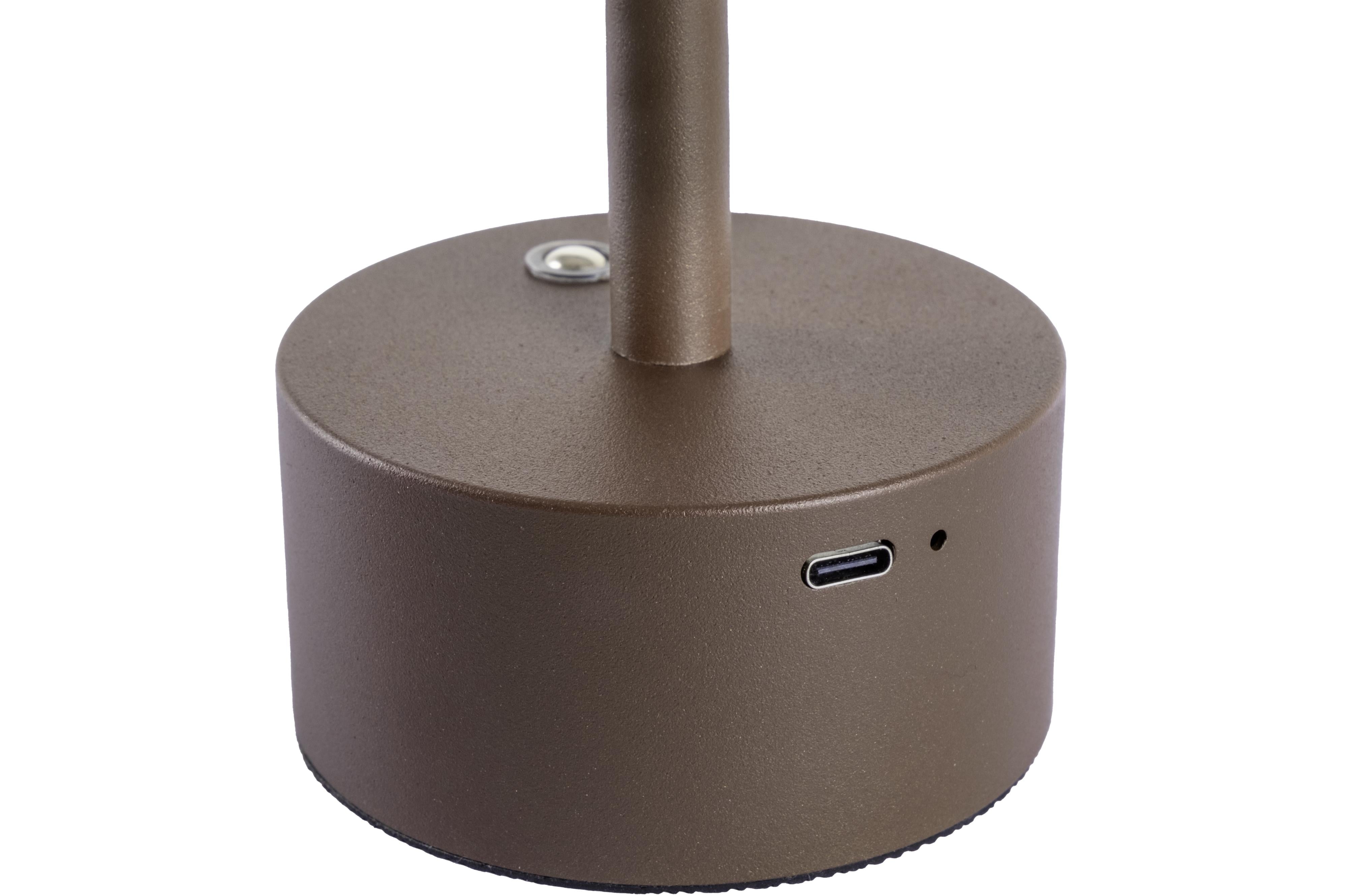 Rechargeable outdoor table lamp with modern design and professional appearance. It offers pleasant light thanks to warm white LED lighting. Equipped with a light intensity control and an elegant metal shade. The integrated The lithium-ion battery can be charged at any time using the included cable. USB cable can be recharged.