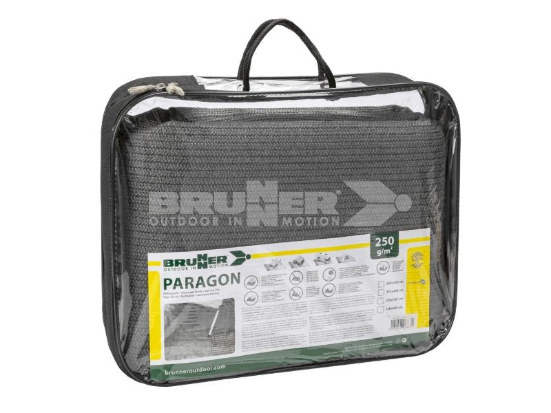 With a light weight of just 250 g/m², the breathable Paragon carpet is ideal for use in combination with caravan and motorhome awnings. Pre-cut to various sizes, the carpets are hemmed all the way around and feature eyelets at the corners. Made from PP tubing and PVC-coated PET yarn, the fabric is both durable and easy to clean, as well as UV-resistant; it comes with a carrying bag.