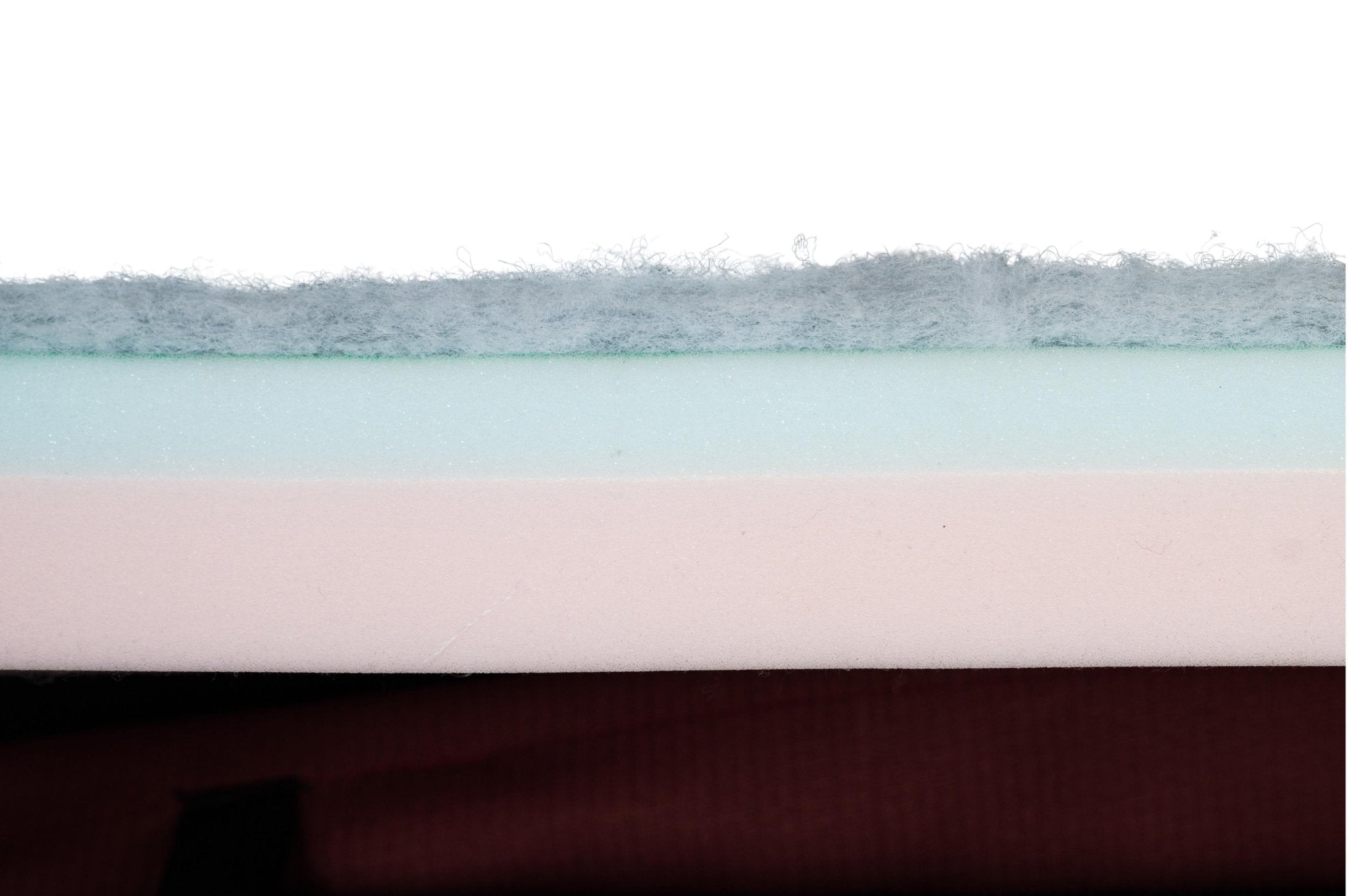 Discover the revolutionary craftsmanship from the idyllic workshops of Carinthia in Austria – the custom-made mattress that combines maximum comfort with innovative design. This unique mattress consists of two high-quality foams that are carefully matched to provide an unparalleled sleeping experience: The base is made of 30 mm N4050 blue foam, which is bonded with precision and expertise. This foam provides a solid foundation for your relaxation. The top section, made of 20 mm R3530 violet, was specially designed to ensure additional comfort and ergonomics – a true delight for discerning sleepers.