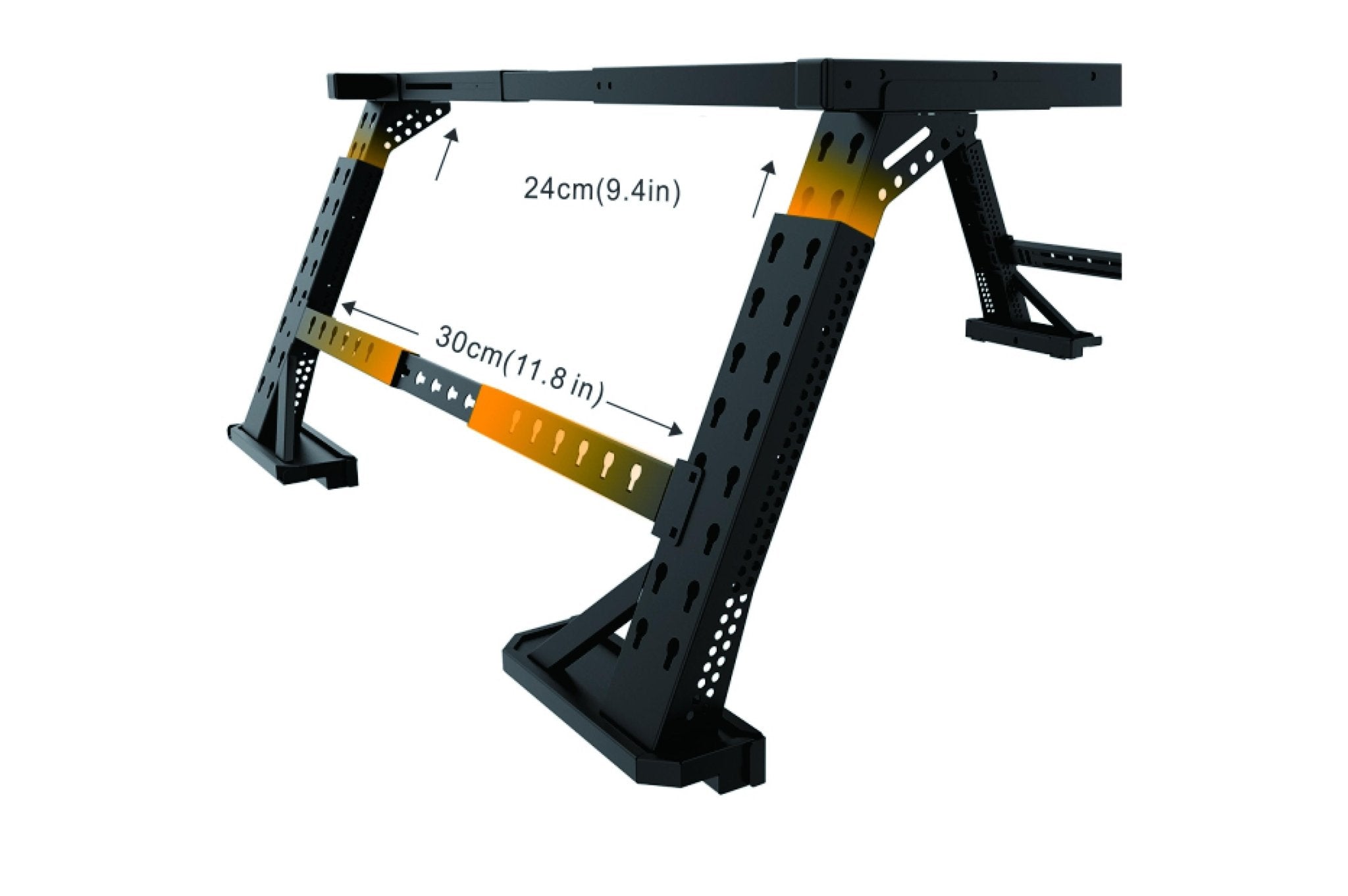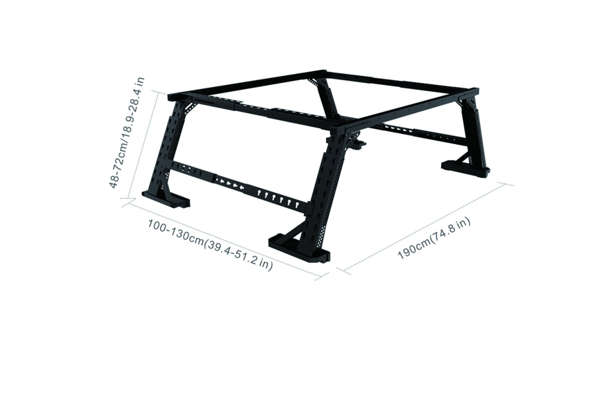 For weekend adventures and tough workdays during the week, the height-adjustable Wild Land heavy-duty rack system offers best-in-class payload capacity and unmatched versatility. The height can be adjusted from 48-72 cm and the length from 100-130 cm to suit your needs. At its highest position, it allows you to carry long loads over the cab; at its lowest position, it keeps the rack and load out of the wind; and in an infinite number of positions in between. This is an ultra-functional bed rack that not only works but is also a lot of fun to use. The maximum load capacity is 250 kg.