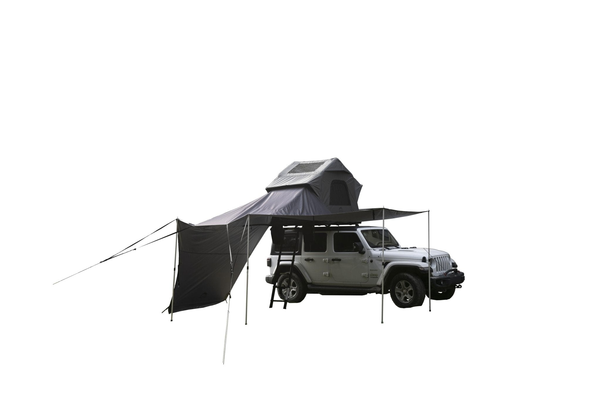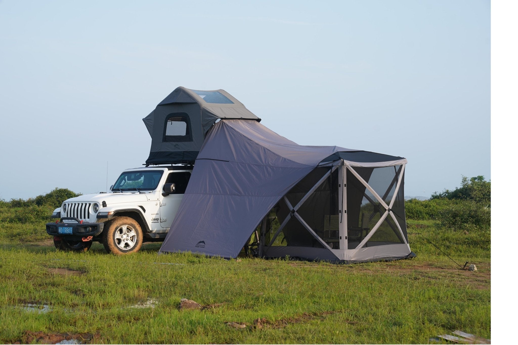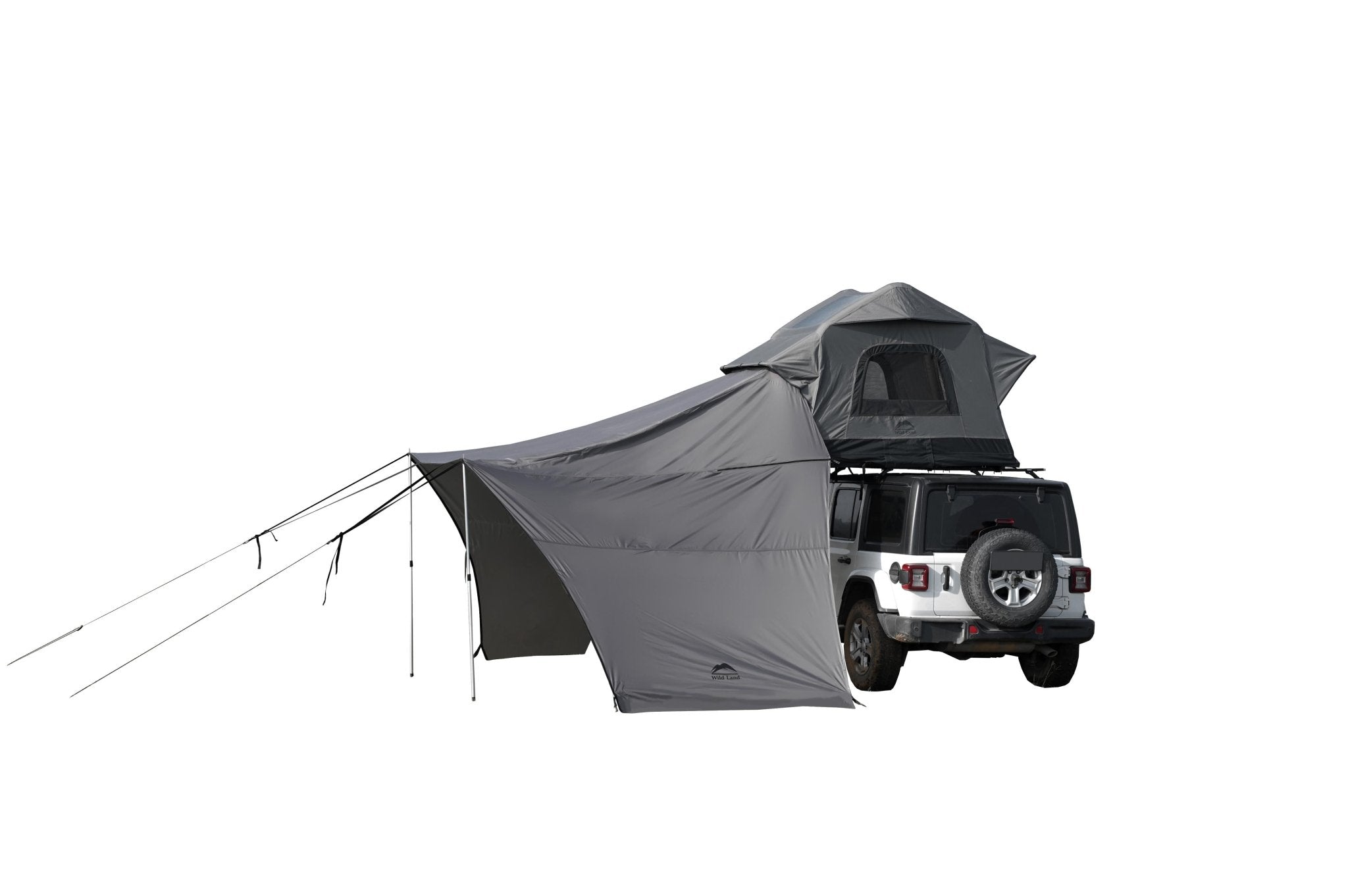 The Wild Land Universal Connector is the perfect accessory for camping enthusiasts, easily connecting to various rooftop tents, including the Hub Screen House 400 and 600. With multiple usage modes – including sunny mode, rainy mode, and private mode – this connector ensures a comfortable camping experience in any weather. The connector provides a maximum shaded area of 16 m², is waterproof (rated 4+) and offers UPF 50+ protection against harmful UV rays. Thanks to its easy assembly and robust construction with four telescopic aluminum poles, the awning remains stable even on uneven terrain. Made with high-quality 210D ripstop poly-Oxford fabric and a silver coating, it is durable and reliable. Accessories such as ground stakes, guy lines, and carrying bags are included, allowing for setup in seconds.