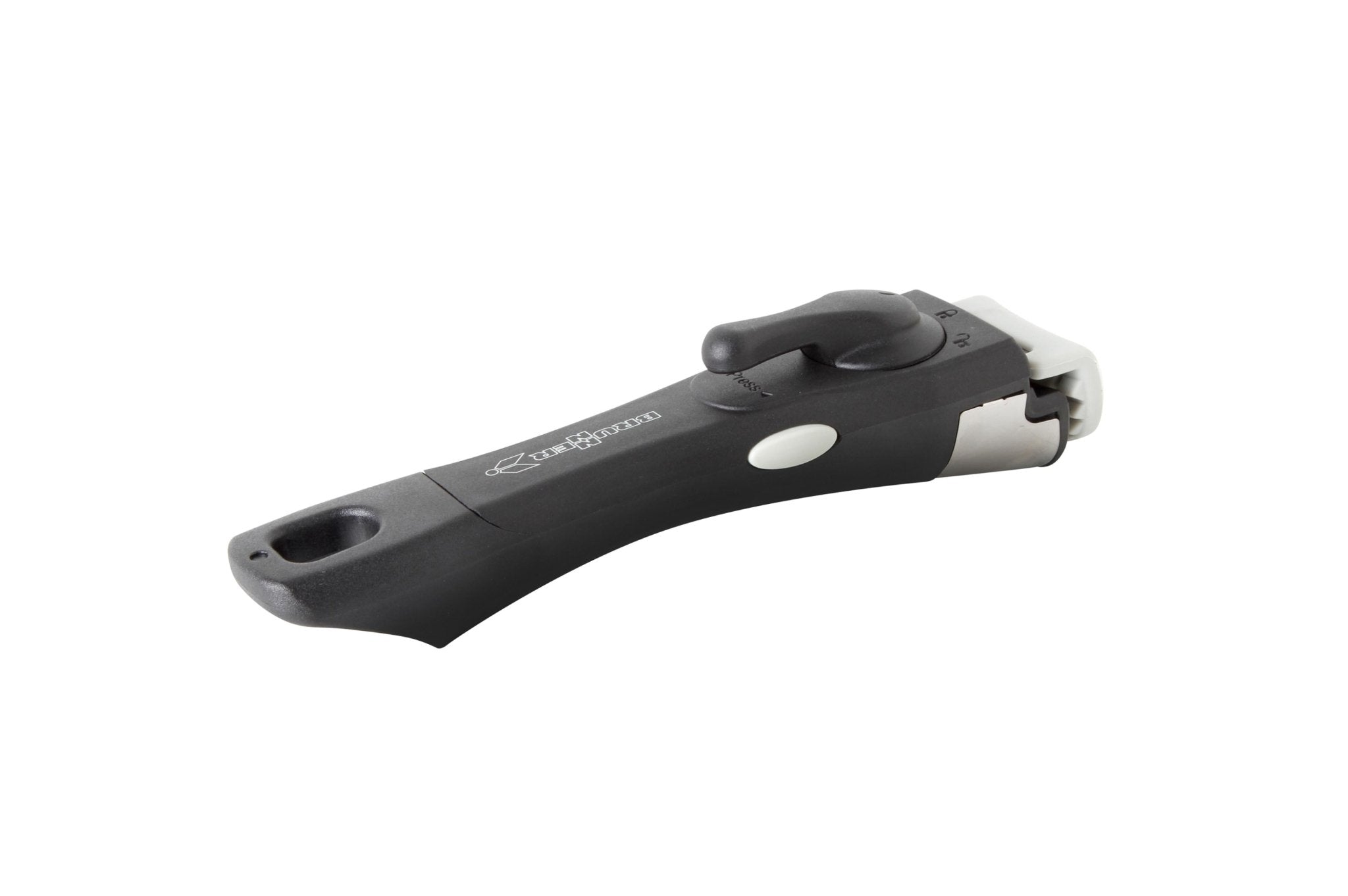 High-quality universal pot handle with a locking mechanism to prevent accidental opening. It clips onto pots or pans with a single movement and cannot come loose on its own. Sturdy construction.