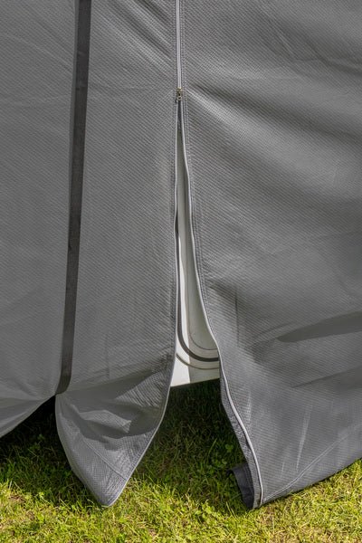 Atmungsaktive und Wetterfeste Schutzhülle erhält den Wert Ihres Reisemobils. Die Seitenwand ist per Reissverschluss leicht zu öffnen und ermöglicht einen Zugang zum Reisemobil. (Länge wird unten gemessen)