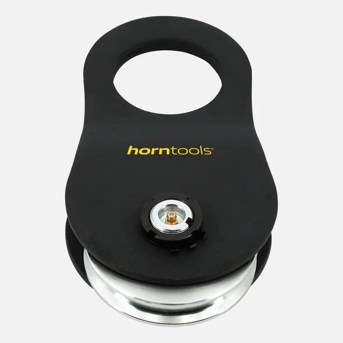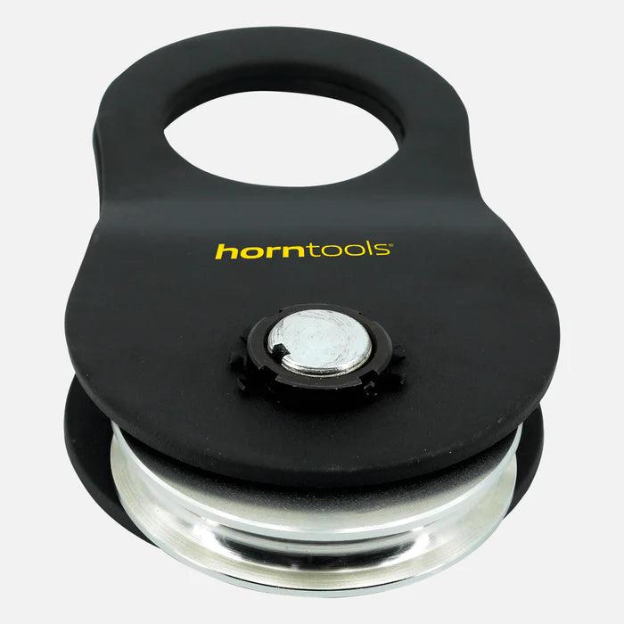 The horntools pulley is a must-have for any off-roader. It has a breaking load of 9 tons and is suitable for ropes up to 11 mm in diameter. With proper maintenance, the integrated grease nipple ensures smooth running and minimal loss of traction. The pulley is suitable for both steel and synthetic ropes.