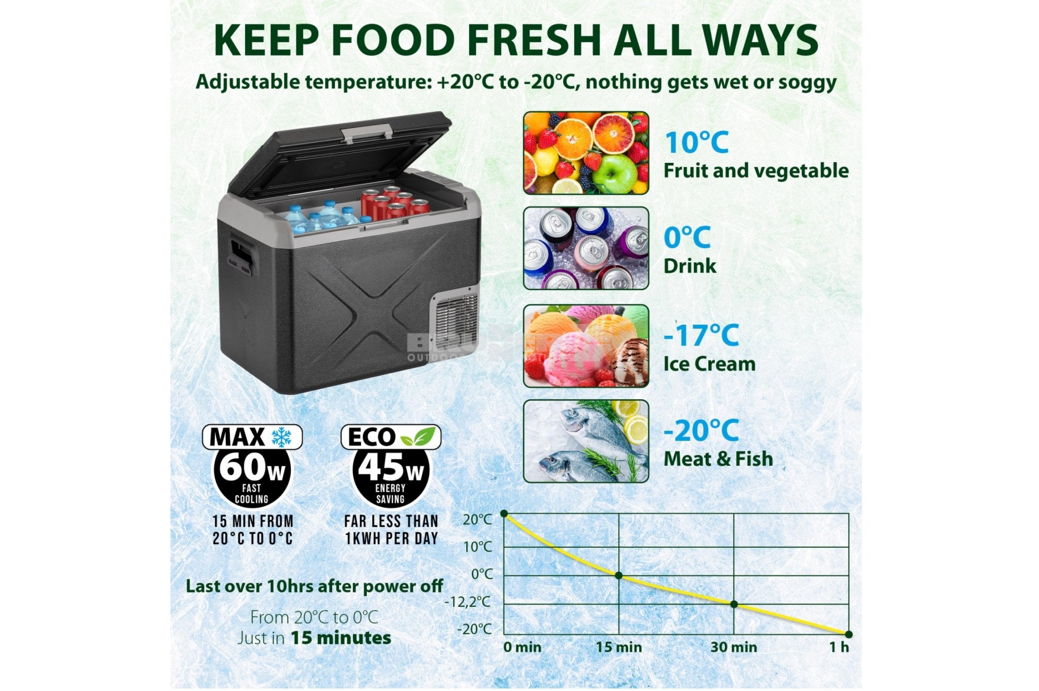 | Temperature settings | +20°C to -20°C |