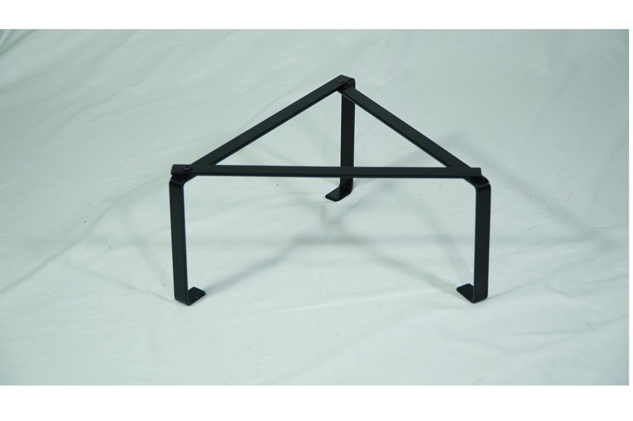Foldable triangular construction for cooking with pots and woks over a fire.