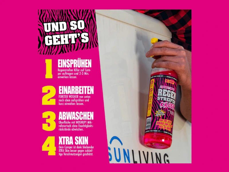 The Rain Streak Killer removes rain streaks, rubber residue, fine dust, and oily and greasy dirt from the exterior of your car. It also features our XTRA Skin Effect.