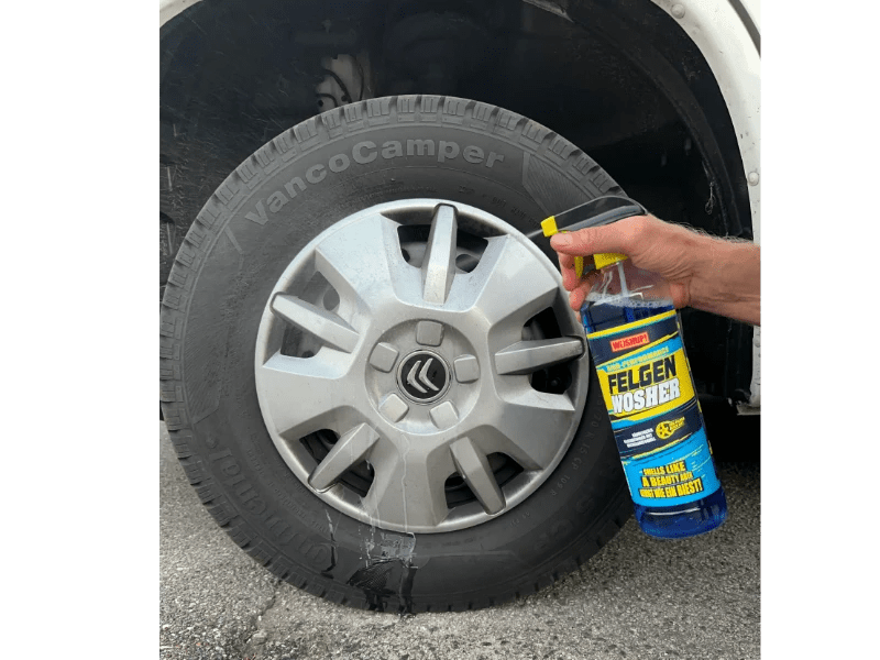 The FELGEN WOSHER removes typical dirt like brake dust, even if it's slightly baked on. Because it doesn't use acid, the FELGEN WOSHER is also suitable for polished and chrome-plated rims.