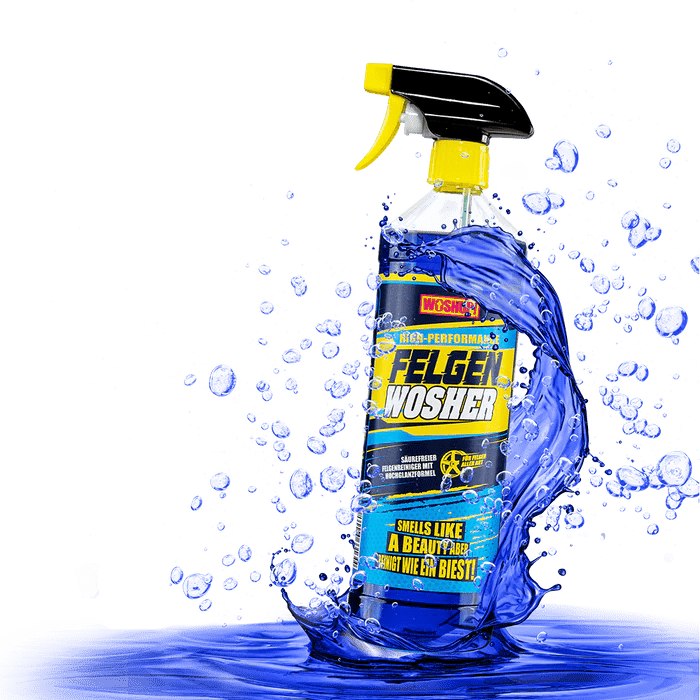 No overpowering stench, no compromise on the fragrance, just pure cleanliness and a sumptuous shine. You don't just shower on top. Anyone who truly loves their four-wheeled treasures will also give their rims a good polish. It sounds dirty, but it isn't. With our RIM WASHER, washing underneath is child's play. Simply spray on, get it wet, scrub, and wipe off. Afterwards, all that's left is a fresh scent and a clear view of shiny rims.