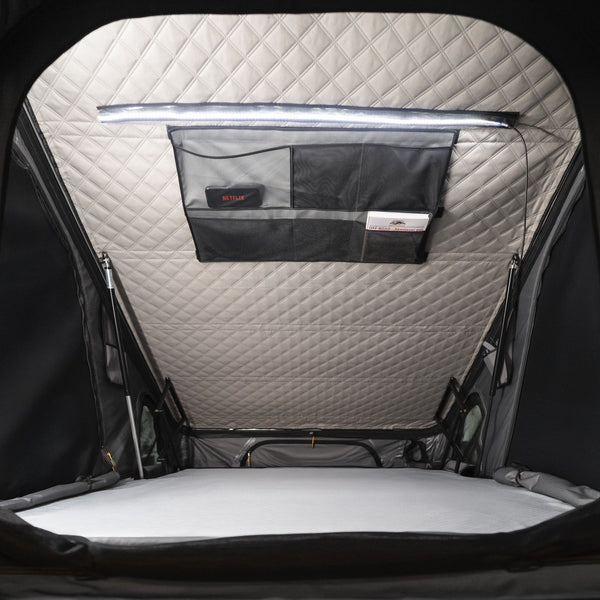 Wir haben das Cloud nicht nur leicht, sondern intelligent gemacht. Dank der umlaufenden Nuten verwandeln Sie Ihr Dachzelt in eine Expeditionszentrale:
