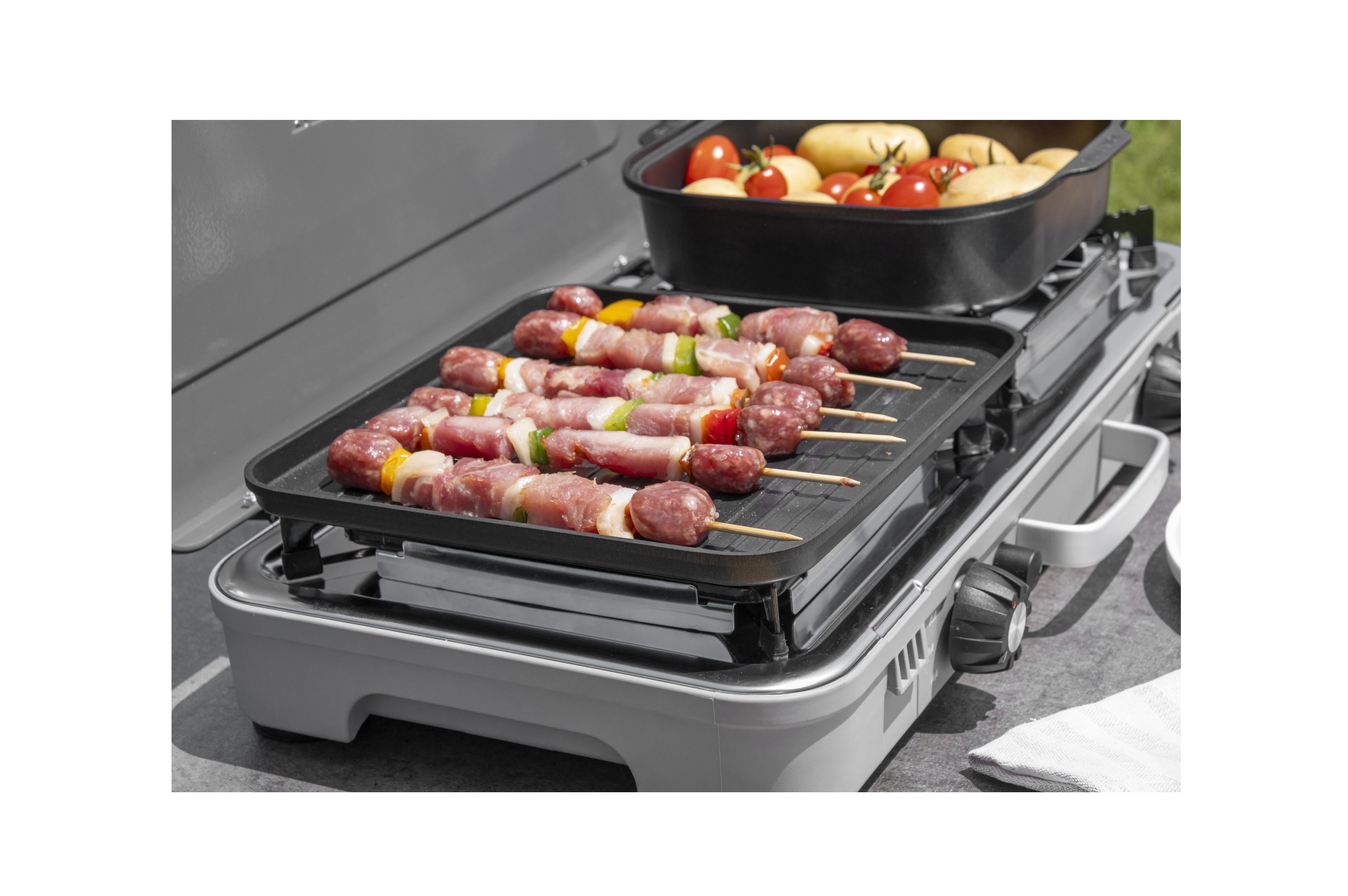 Piastra Grill of the highest quality with a stainless steel surface and a specially designed backing that guarantees excellent durability across all gas levels. The ribbed surface features a non-stick coating to prevent food from sticking to the grill plate.