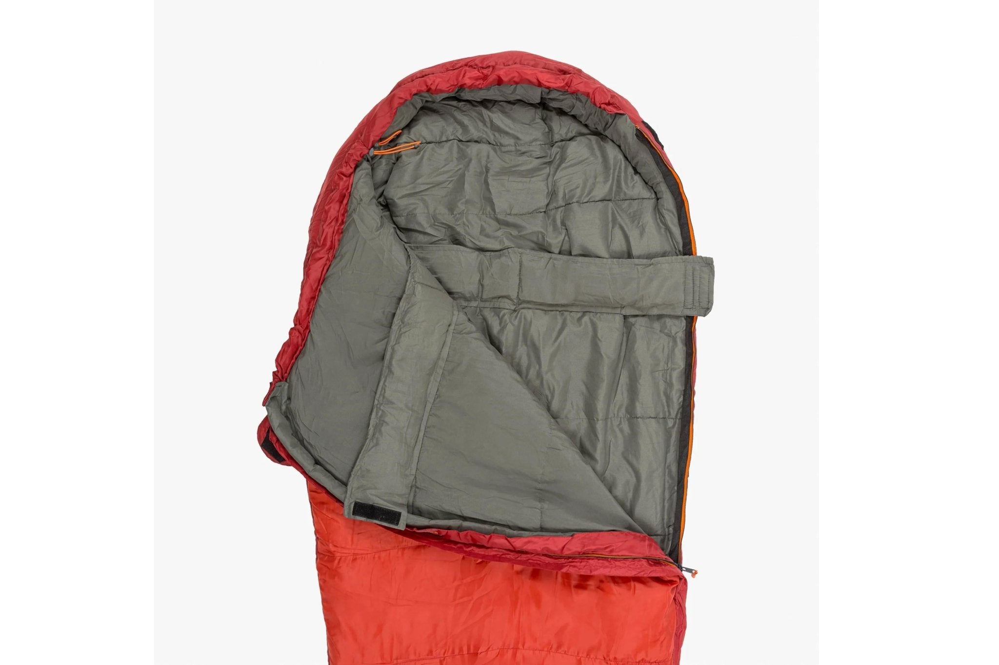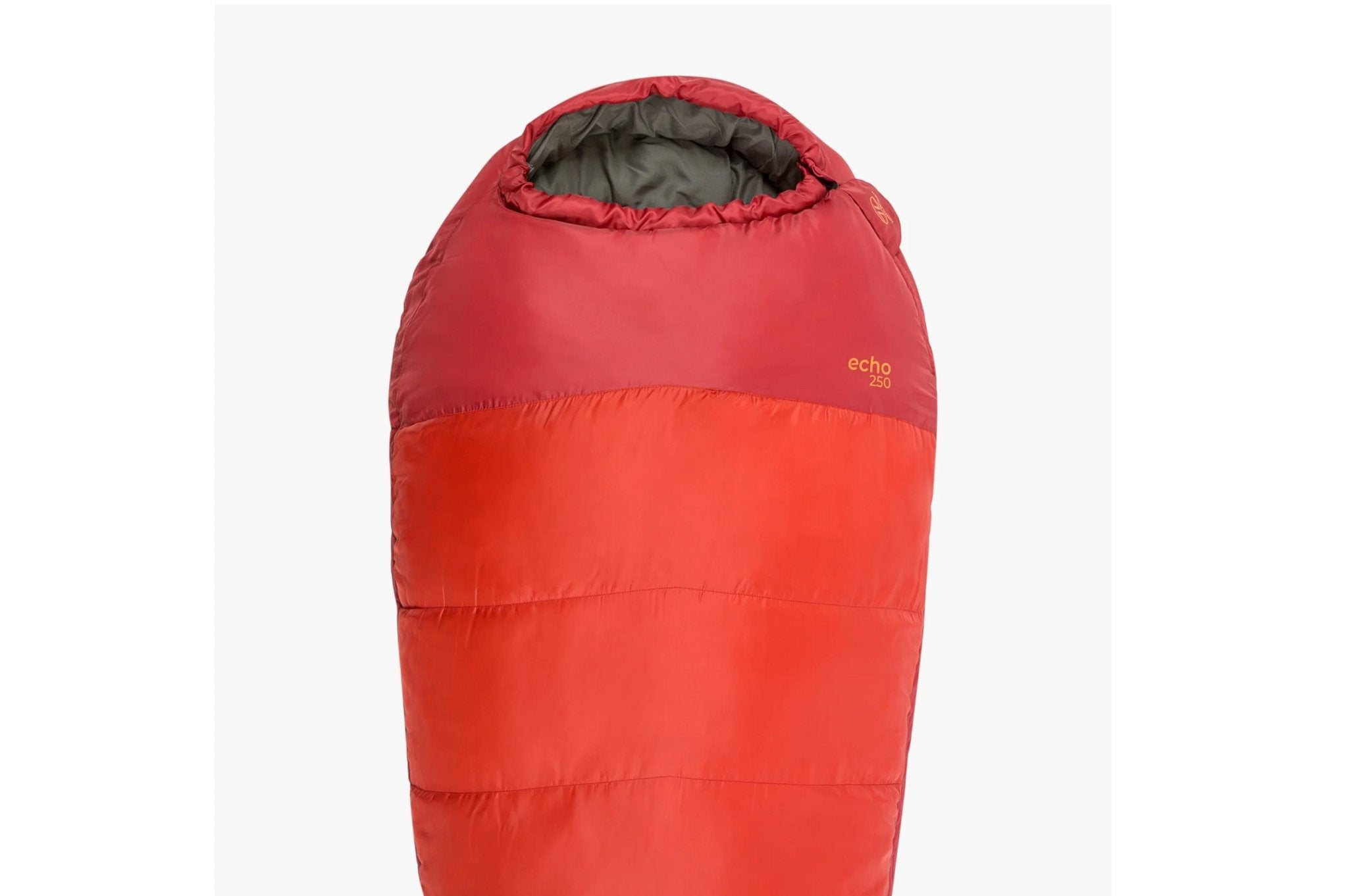 The Echo 250 is a super comfortable and warm 2-3 season mummy sleeping bag that will give you a great night's sleep when camping in the mountains. The mummy shape helps optimize warmth and minimize dead space, while the shoulder baffle traps body heat inside the sleeping bag. The Echo 250 is constructed from durable ripstop polyester fabric that prevents tearing and is insulated with QFX synthetic spiral polyester hollow fiber fill, which retains warmth even when wet and dries relatively quickly. With features such as a windproof collar to prevent heat loss, a two-way zipper for ventilation and easy access, an adjustable hood, and an internal pocket for storing small items, the ECHO 250 is the perfect sleeping bag for cooler nights in temperate climates.