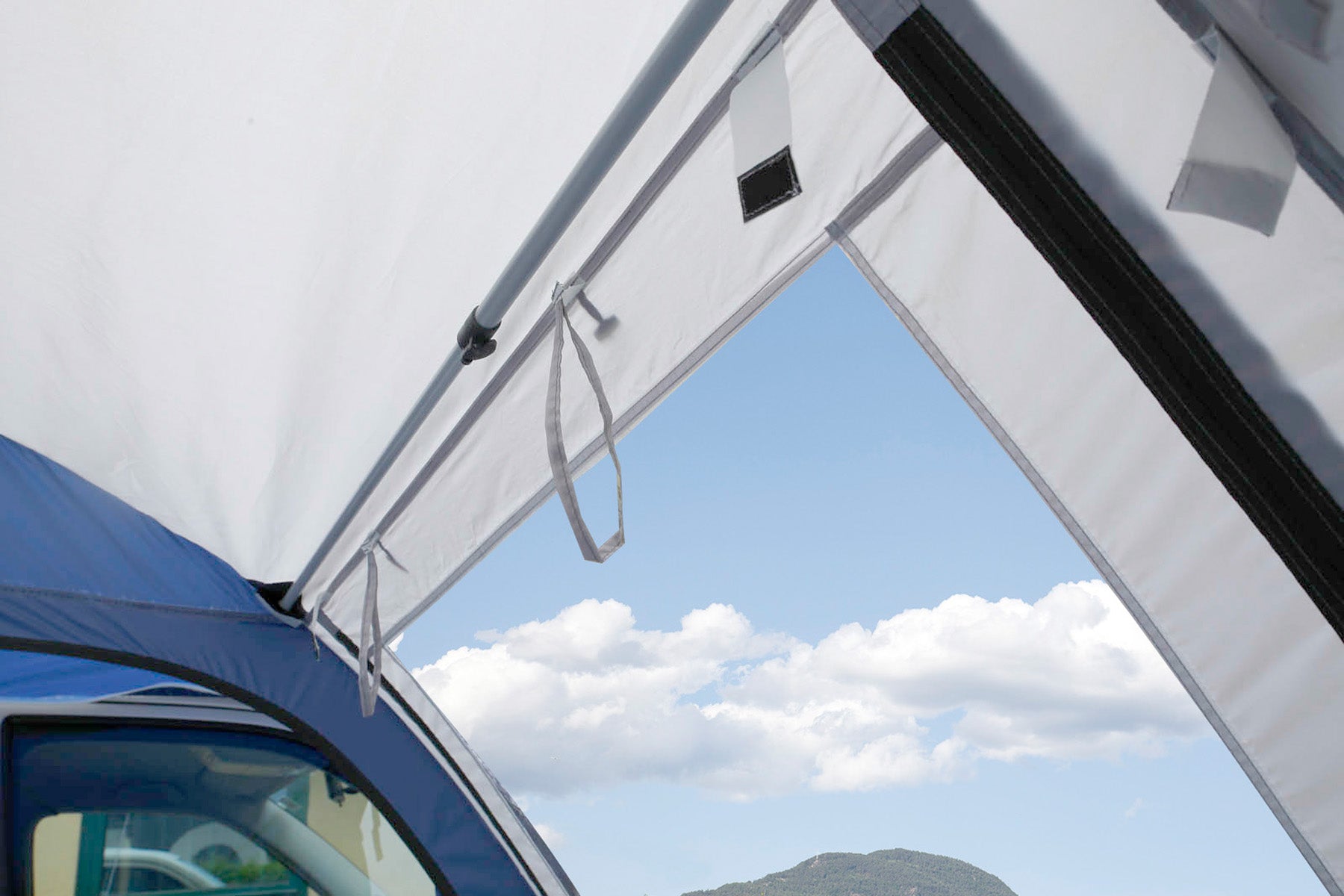 Discover the freedom of mobile living with our compact bus awning, ideal for campervans with a rain gutter height of 180 to 220 cm. Its quick setup with fiberglass poles makes it the perfect addition to your outdoor adventure.