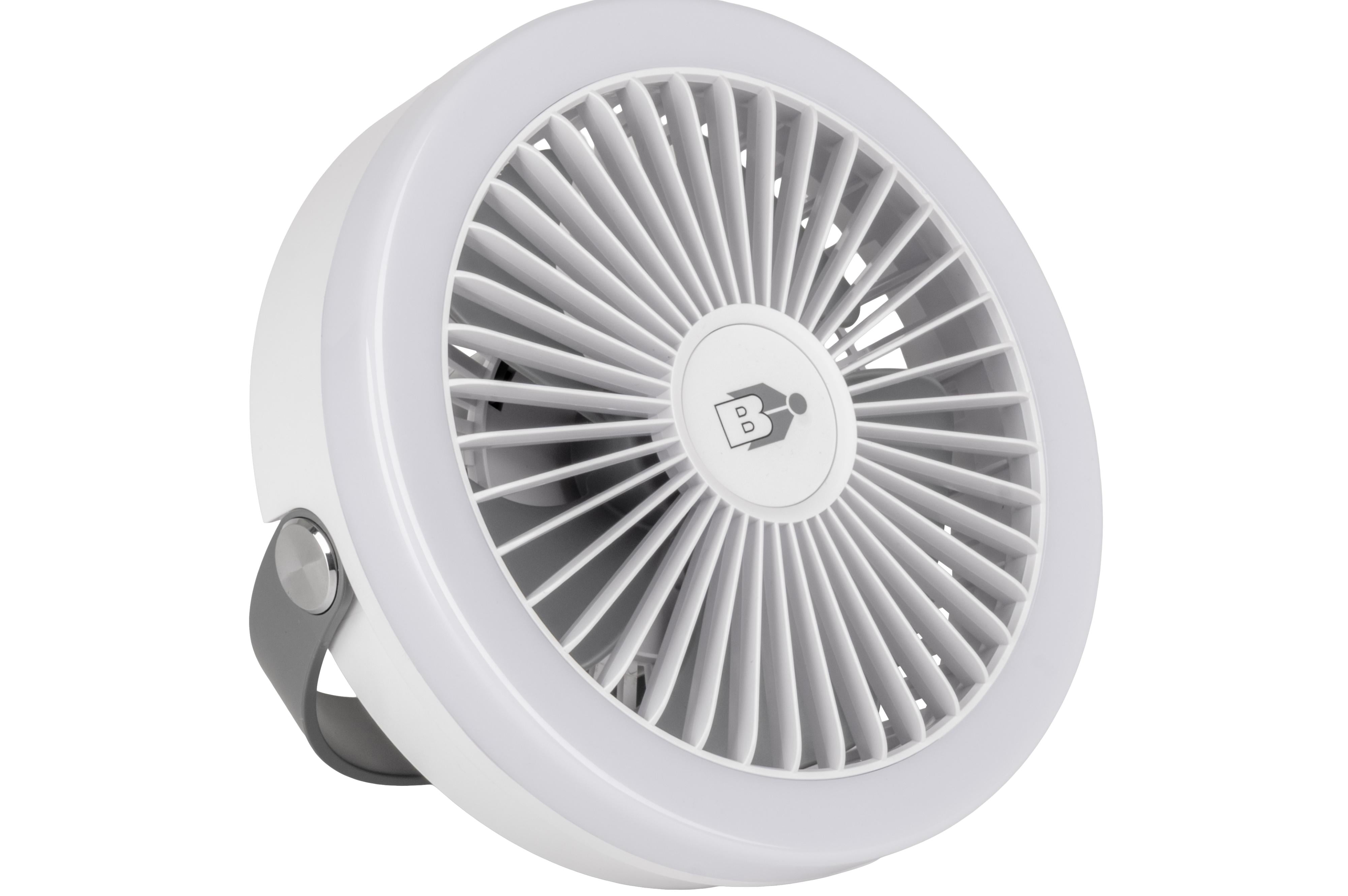 • Rechargeable fan with a 4000 mAh battery and a 2-hour charging time.