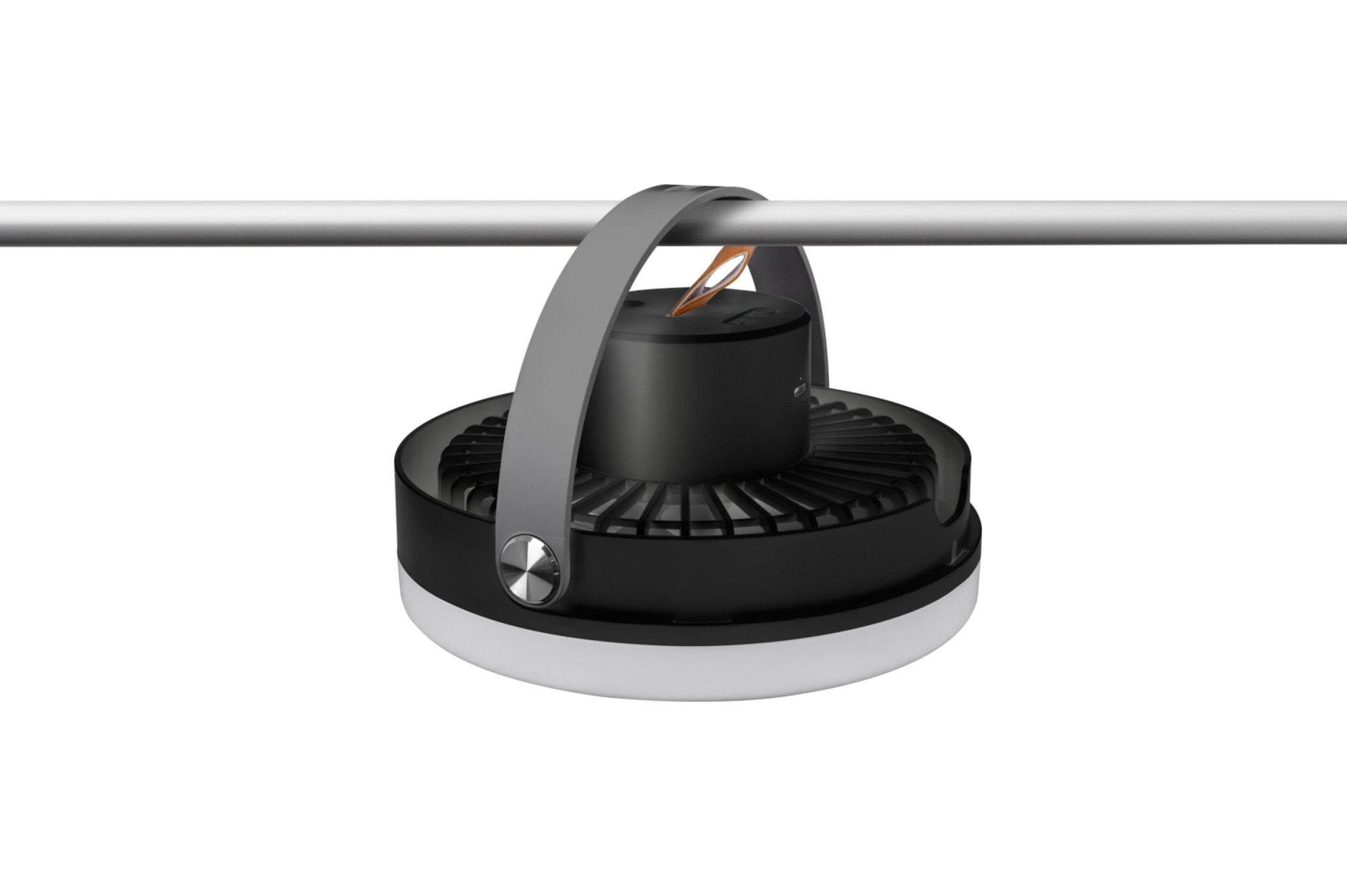 This rechargeable outdoor fan with LED light combines a modern two-color design with practical functionality. With three adjustable wind speeds and brightness levels, it offers optimal comfort for outdoor use. The integrated hanging hook allows for flexible attachment to tents or awnings, while it can also be used freestanding. The 4000 mAh battery provides continuous airflow after just a 2-hour charge. Thanks to USB power, the fan can be easily connected to mobile devices, computers, or phone adapters.