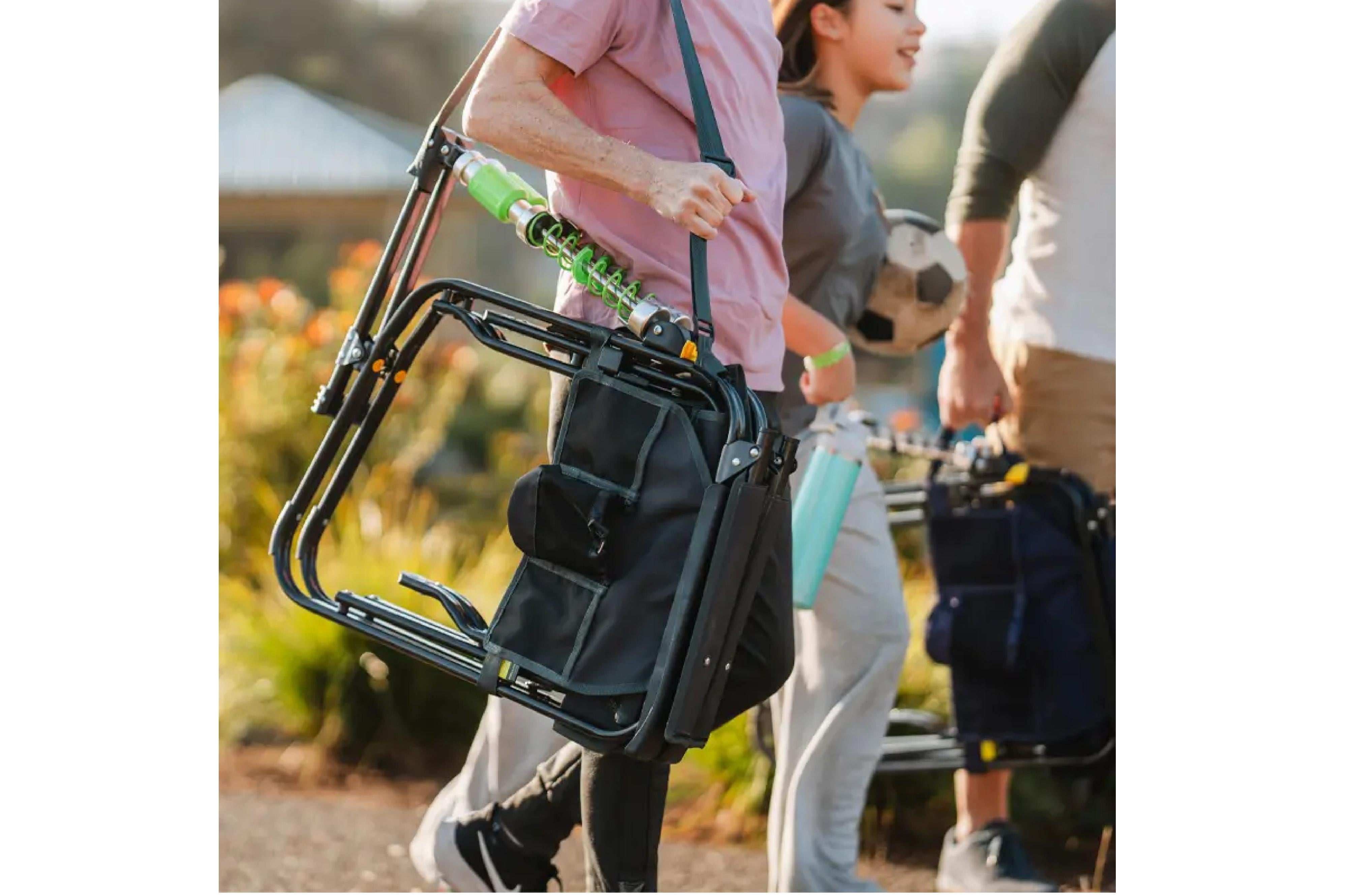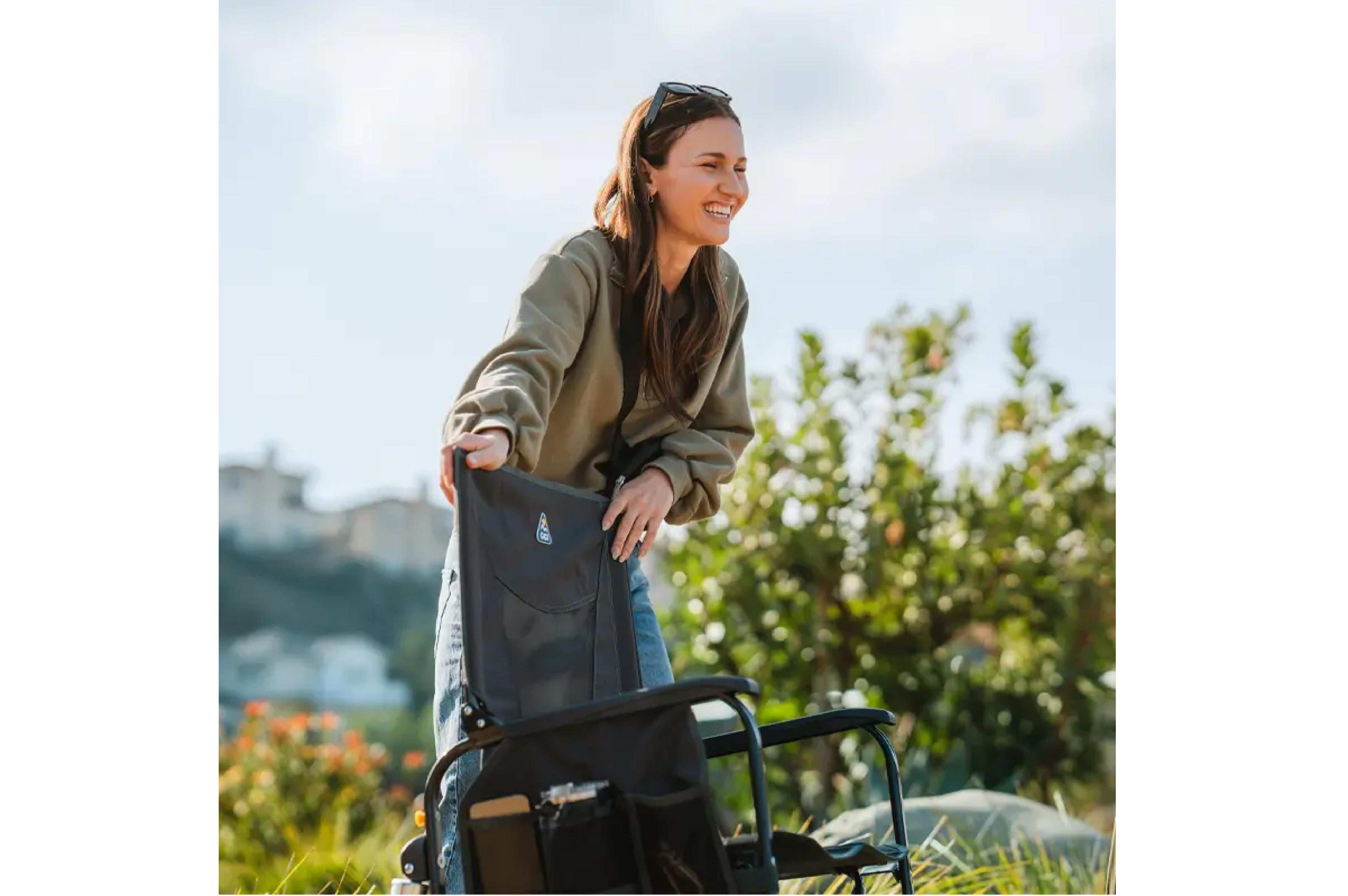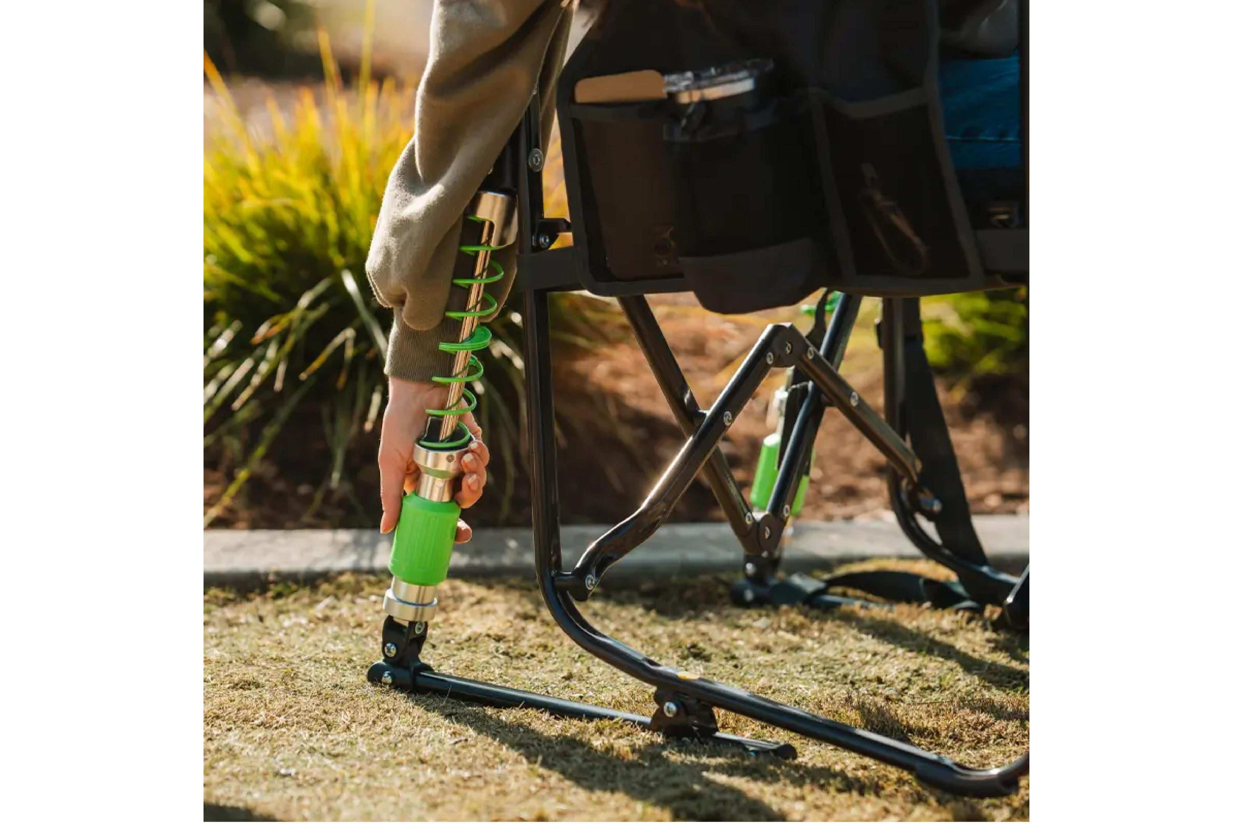 Der Adjustable Rocker ist ein komfortabler, tragbarer Schaukelstuhl, der dir ein angenehmes Schaukeln im Freien ermöglicht. Er verfügt über eine strukturierte Sitzfläche, die dir Halt bietet, ein Mesh-Panel, das für Belüftung sorgt, und eine Seitentasche, in der du dein Handy und andere wichtige Dinge verstauen kannst. Die patentierte Spring-Action Rocking Technology™ sorgt für eine sanfte Schaukelbewegung auf jedem Untergrund – vom Rasen bis zum Strand.