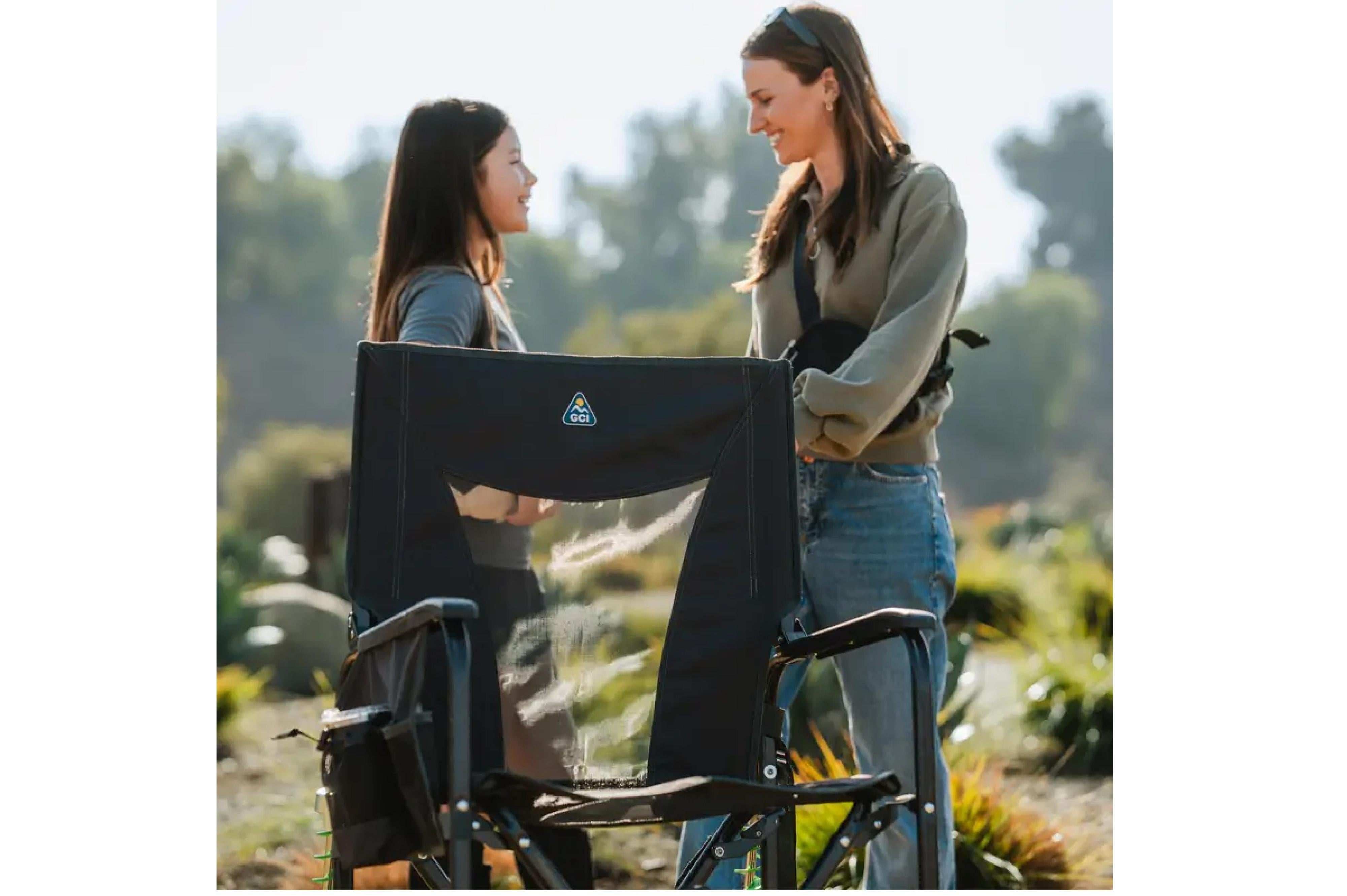 Der Adjustable Rocker ist nicht nur gemütlich, sondern auch praktisch. Er ist aus robustem, pulverbeschichtetem Stahl gefertigt und hält bis zu 136 kg aus. Er lässt sich leicht zusammenklappen und in einer stabilen Tasche mit Tragegriff transportieren.