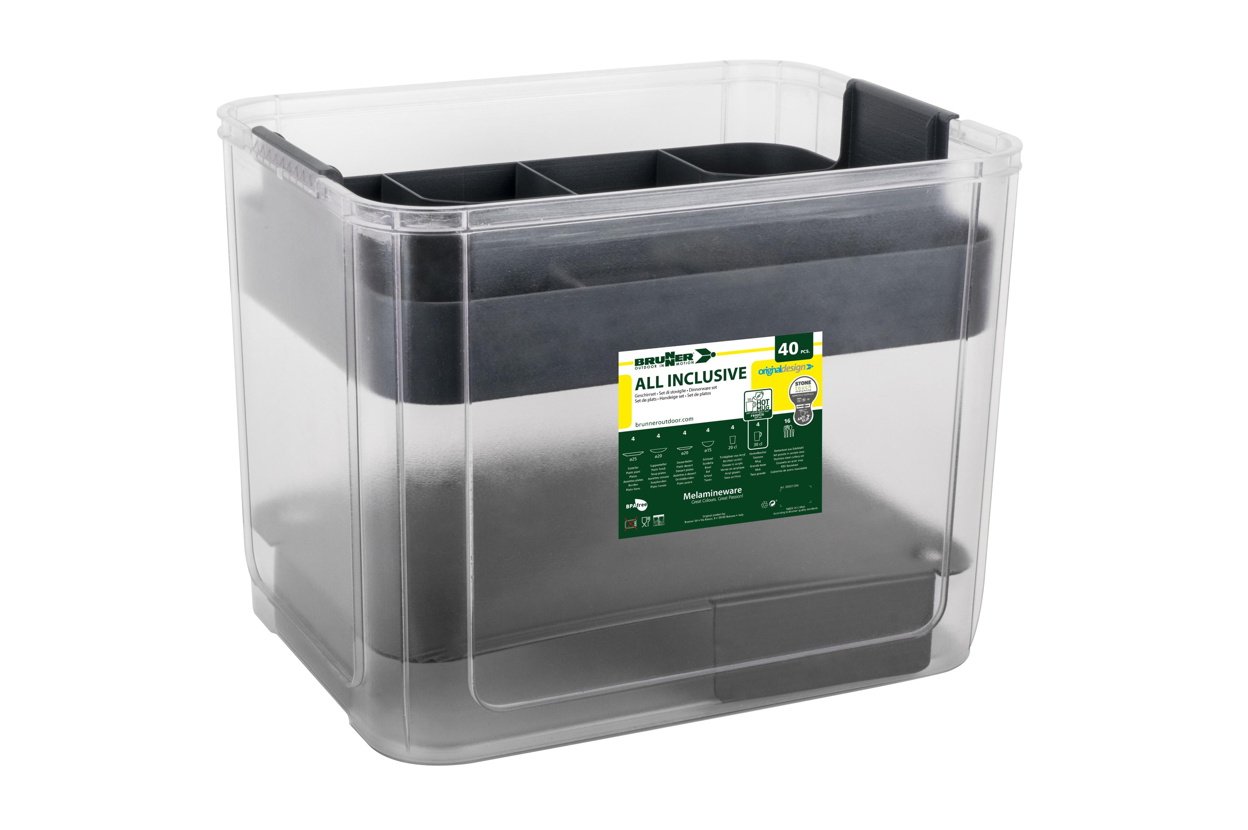 | Inhalt | 4 Essteller (ø 25 cm), 4 Suppenteller (ø 21 cm), 4 Dessertteller (ø 21 cm), 4 Schalen (ø 18 cm), 4 Henkelbecher (300 ml), 4 Trinkgläser (200 ml), 16-teiliges Besteckset, 1 Transportbox |