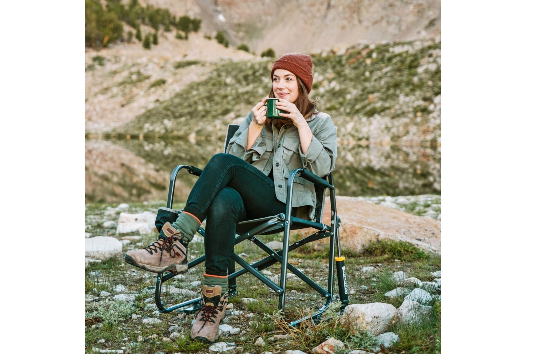Camping und Outdoor Schaukelstuhl: Stilvoll, cool und bequem schaukeln. Mit unserem Schaukelstuhl für draußen kannst du dich in der Natur entspannt zurücklehnen. Der Freestyle Rocker ist mit der patentierten Spring-Action Rocking Technology™ ausgestattet, die dir ein sanftes Schaukelerlebnis bietet. Egal ob du campen, angeln, grillen oder einfach nur im Garten relaxen willst, der Freestyle Rocker ist dein perfekter Begleiter. Er hat einen praktischen Tragegriff und lässt sich mit der patentierten Eazy-Fold™ Technologie sicher und einfach auf- und zuklappen.