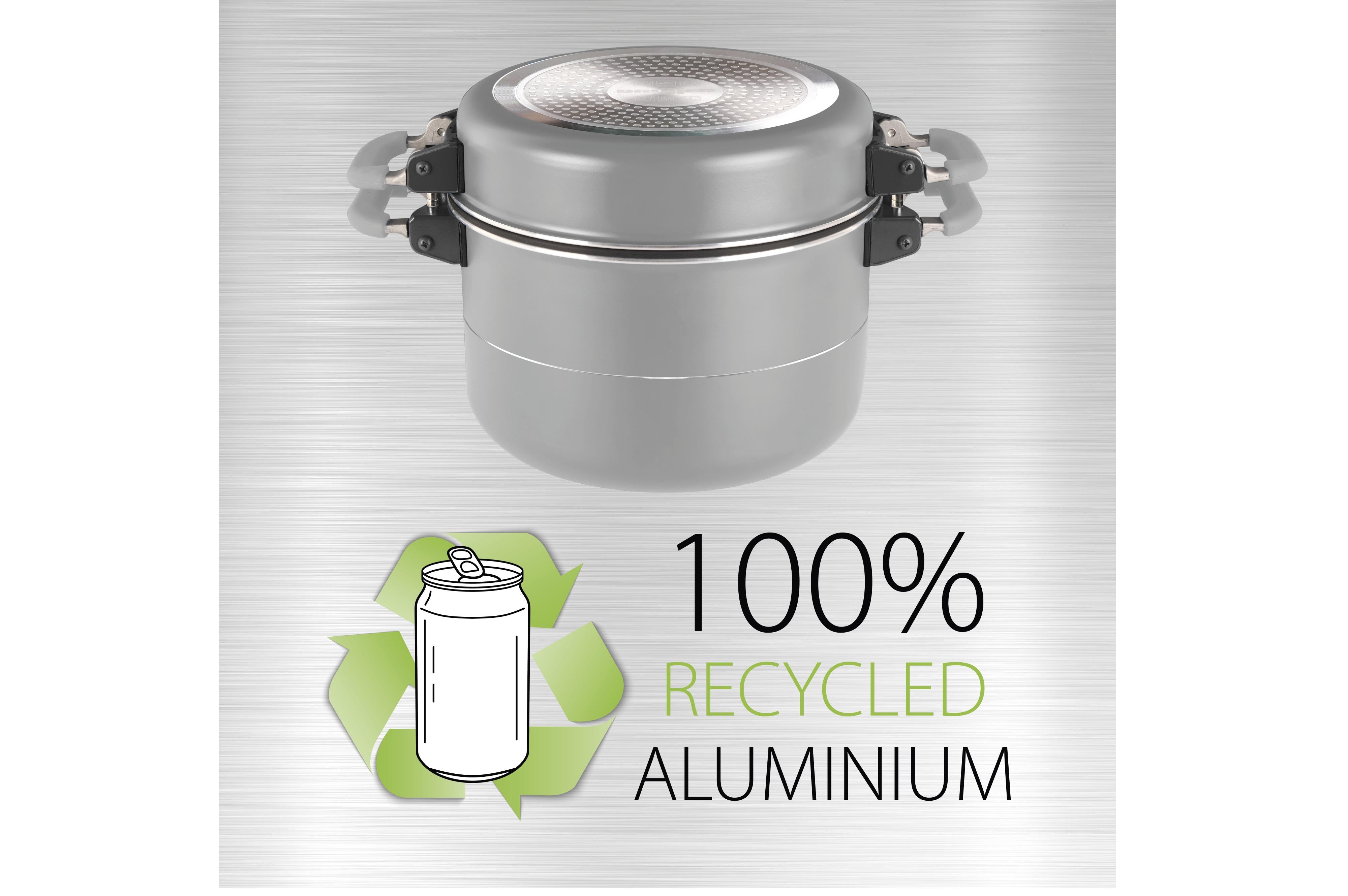 Neu entwickeltes Griff- und Verbindungssystem, das durch die Verwendung von abklappbaren Griffen mit integriertem Magnetelement eine deutliche Verringerung des Packmaßes der Topfsets ermöglicht und zudem die Verwendung eines Zurrgurtes zur Stabilisierung von Topf und Pfanne während des Transportes unnötig macht. Hochwertige Kochgeschirrsetkollektion mit induktionsfähigem Boden und kratzfester Keramik-Antihaftbeschichtung für fettarmes und schonendes Braten. Ausgestattet mit den revolutionären Vacublock und Magnetogrip Systemen. Alle Töpfe und Pfan- nen sind platzsparend ineinander stapelbar.