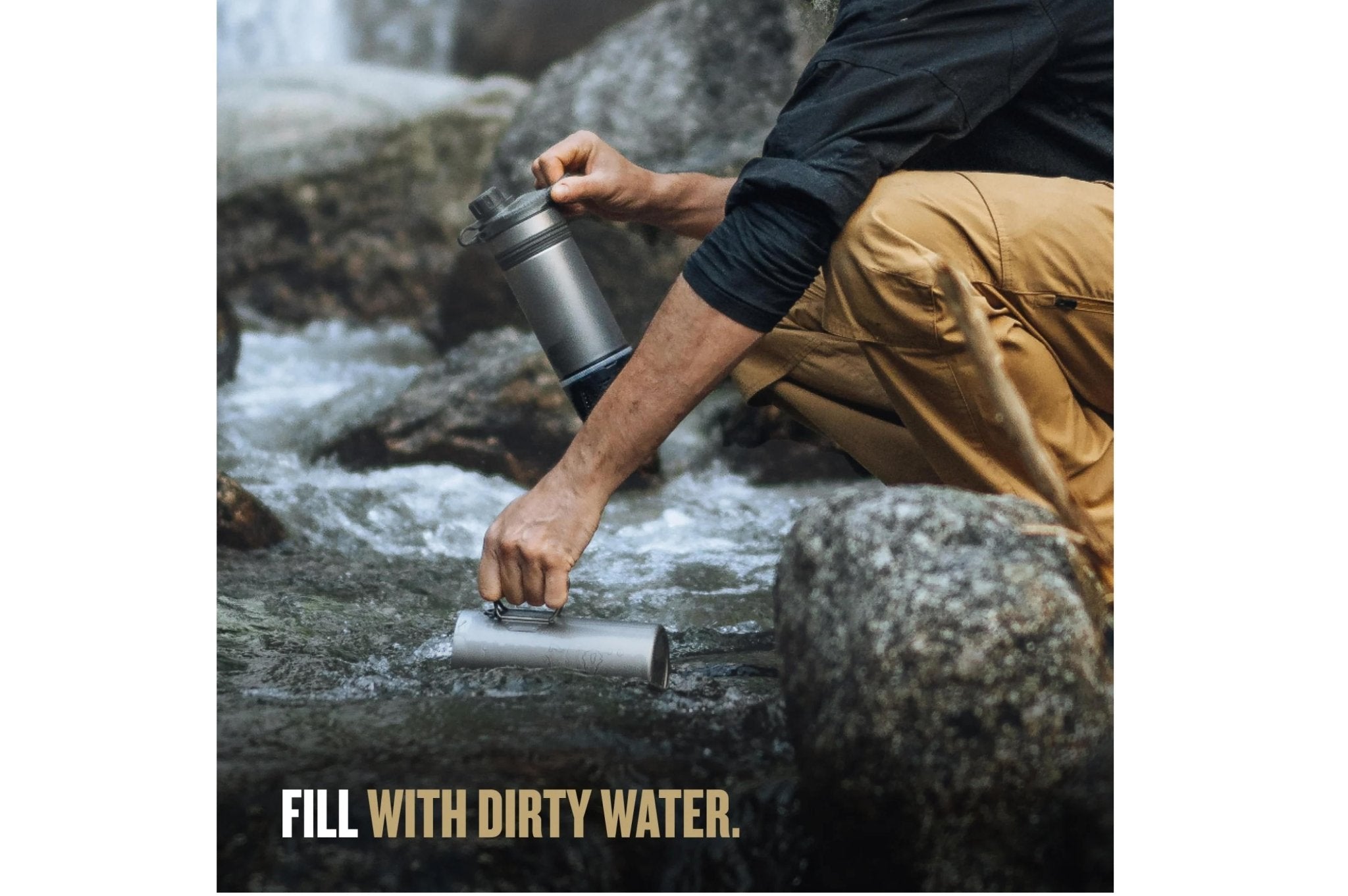 Die GeoPress® Ti ist das ultimative Werkzeug für Outdoor-Enthusiasten, Reisende und Survivalisten. Diese vielseitige 710 ml Flasche aus CP4 Grade 1 Titan vereint Wasserbehälter, Filter, Reiniger, Trinkgefäß und Kochgeschirr in einem kompakten Design.