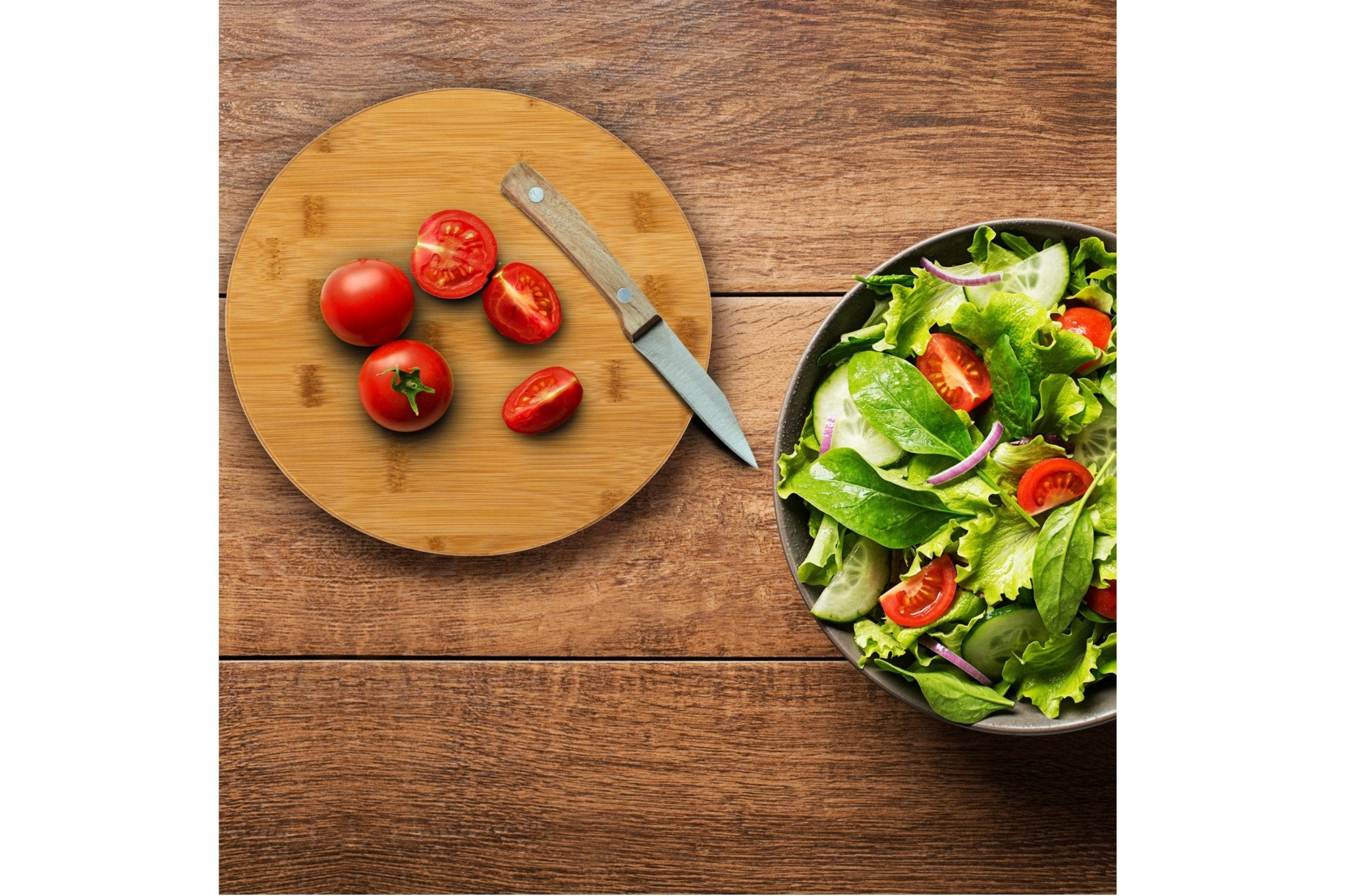 • Echter Bambusdeckel, auch als Schneidebrett nutzbar.
