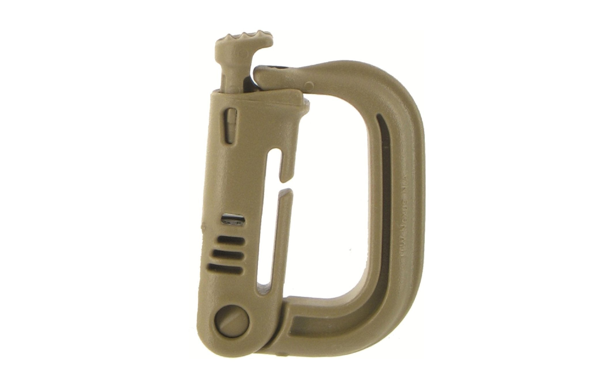 Dieser ITW Nexus Grimloc Verschluss-D-Ring ersetzt den Metallkarabiner und kann zur Befestigung von Schlüsselbändern, Waffen und Zubehör verwendet werden