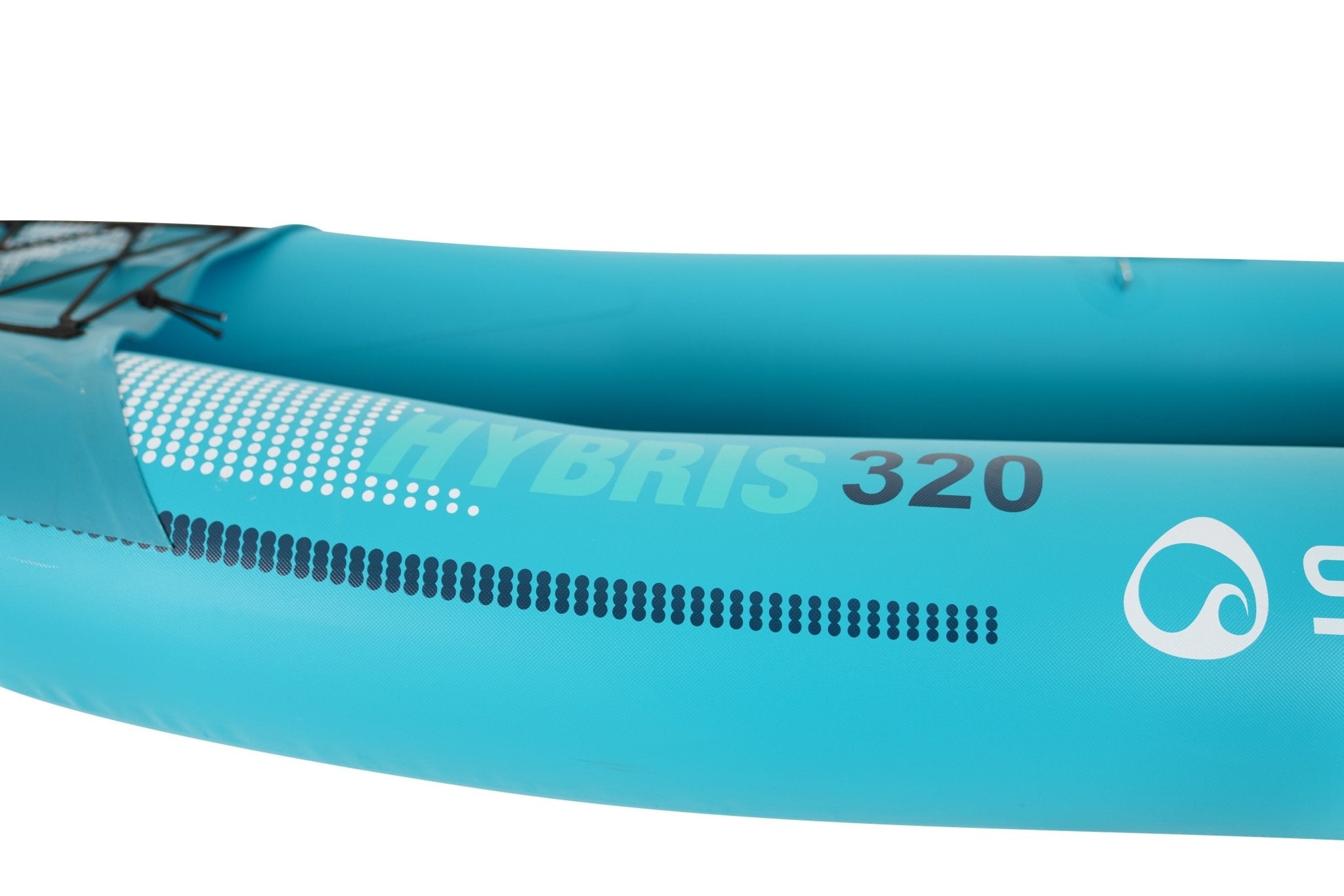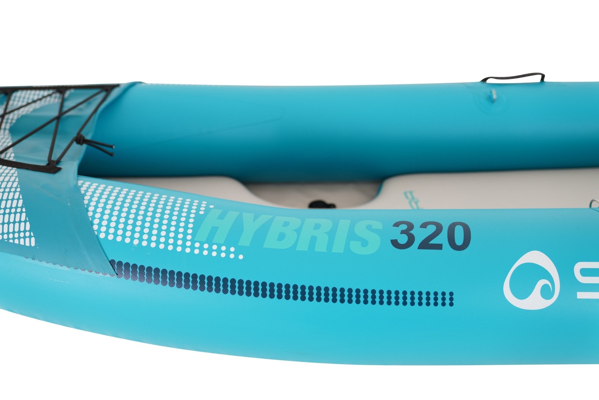 Das Hybris 320 ist ein 1-Kayak aus hochwertigen Materialien. Die Siderails aus verstärktem PVC sorgen für eine hervorragende Stabilität und der Tarpaulin Boden schützt das Boot gegen Abreibung und harte Gegenstände. Die Sitzfläche besteht aus 8cm HDDS - High Density Drop Stitch Floor und sorgt für zusätzliche Stabilität. Bug wie Heck sind mit Spritzschutz ausgerüstet und bieten Platz für kleinere Gepäckstücke. Die zusätzlichen Gepäcknetze bieten zudem Platz für weiter Dinge, die schnell greifbar sein müssen. Die schlanke Form des Bootes mit einer Breite von 90 cm ermöglichen ein flüssiges vorwärtskommen. Die 2 Finnen des Hybris 320 sorgen zudem für einen hervoragenden Geradeauslauf. Das Hybris ist die ideale Wahl für den Weekend-Ausflug oder die längere Tour auf Seen und ruhigen Flüssen. Der mitgelieferte Sitz und die Stautasche sind hochwertig gemacht. Ein geeignetes Paddel muss seperat ausgesucht werden und ist nicht im Lieferumfang enthalten.