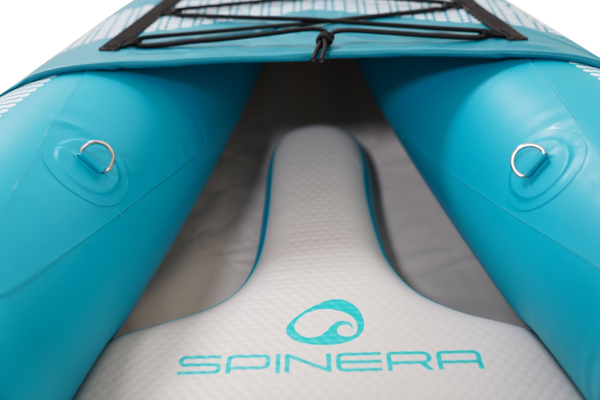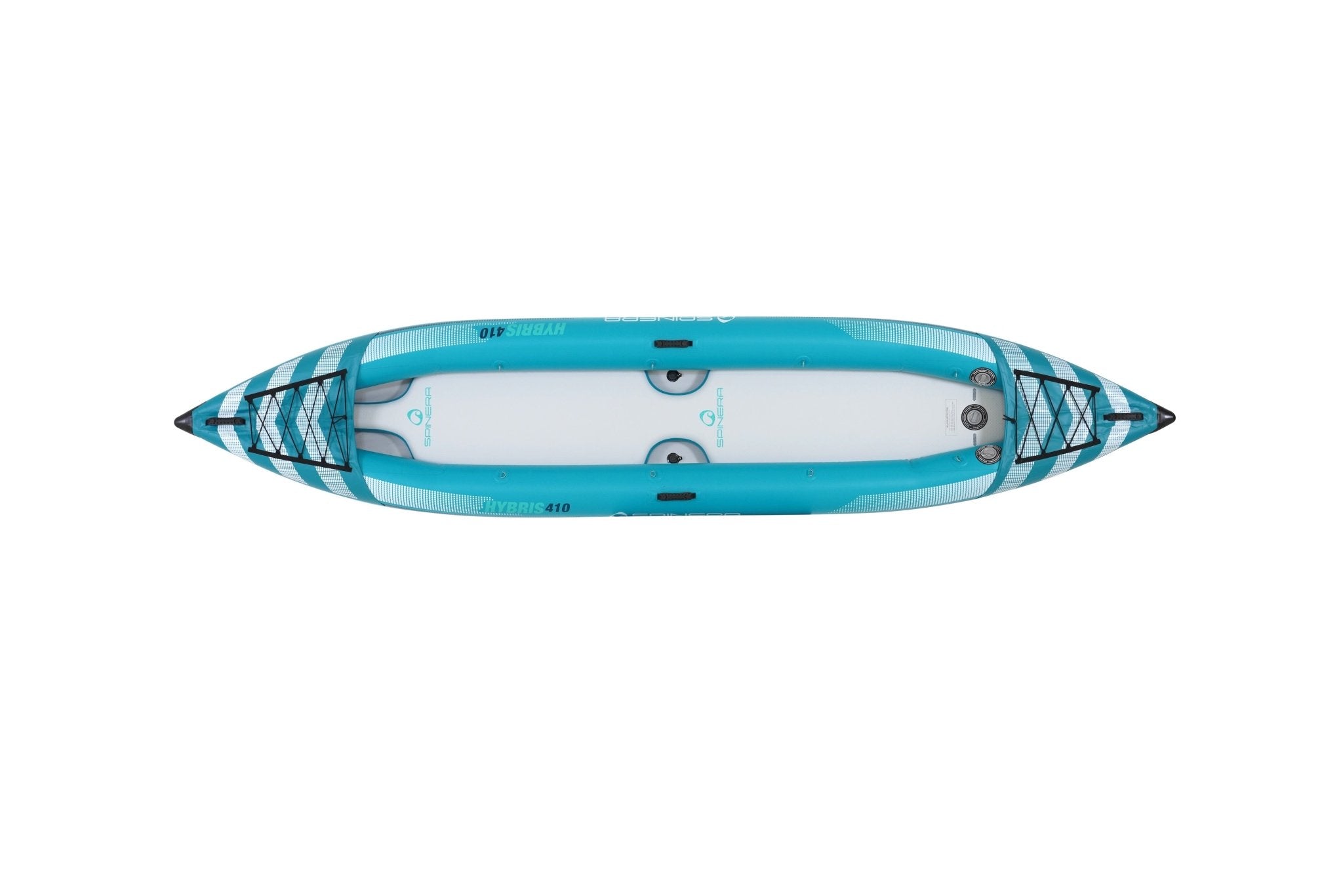 Das Hybris 410 ist ein 2-Kayak aus hochwertigen Materialien. Das Boot bietet gut Platz für zwei Erwachsene. Die Siderails aus verstärktem PVC sorgen für eine hervorragende Stabilität und der Tarpaulin Boden schützt das Boot gegen Abreibung und harte Gegenstände. Die Sitzfläche besteht aus 8cm HDDS - High Density Drop Stitch Floor und sorgt für zusätzliche Stabilität. Bug wie Heck sind mit Spritzschutz ausgerüstet und bieten Platz für kleinere Gepäckstücke. Die zusätzlichen Gepäcknetze bieten zudem Platz für weiter Dinge, die schnell greifbar sein müssen. Die schlanke Form des Bootes mit einer Breite von 90 cm ermöglichen ein flüssiges vorwärtskommen. Die 2 Finnen des Hybris 410 sorgen zudem für einen hervoragenden Geradeauslauf. Das Hybris ist die ideale Wahl für den Weekend-Ausflug oder die längere Tour auf Seen und ruhigen Flüssen. Der mitgelieferten Sitze und die Stautasche sind hochwertig gemacht. Ein geeignetes Paddel muss seperat ausgesucht werden und ist nicht im Lieferumfang enthalten.