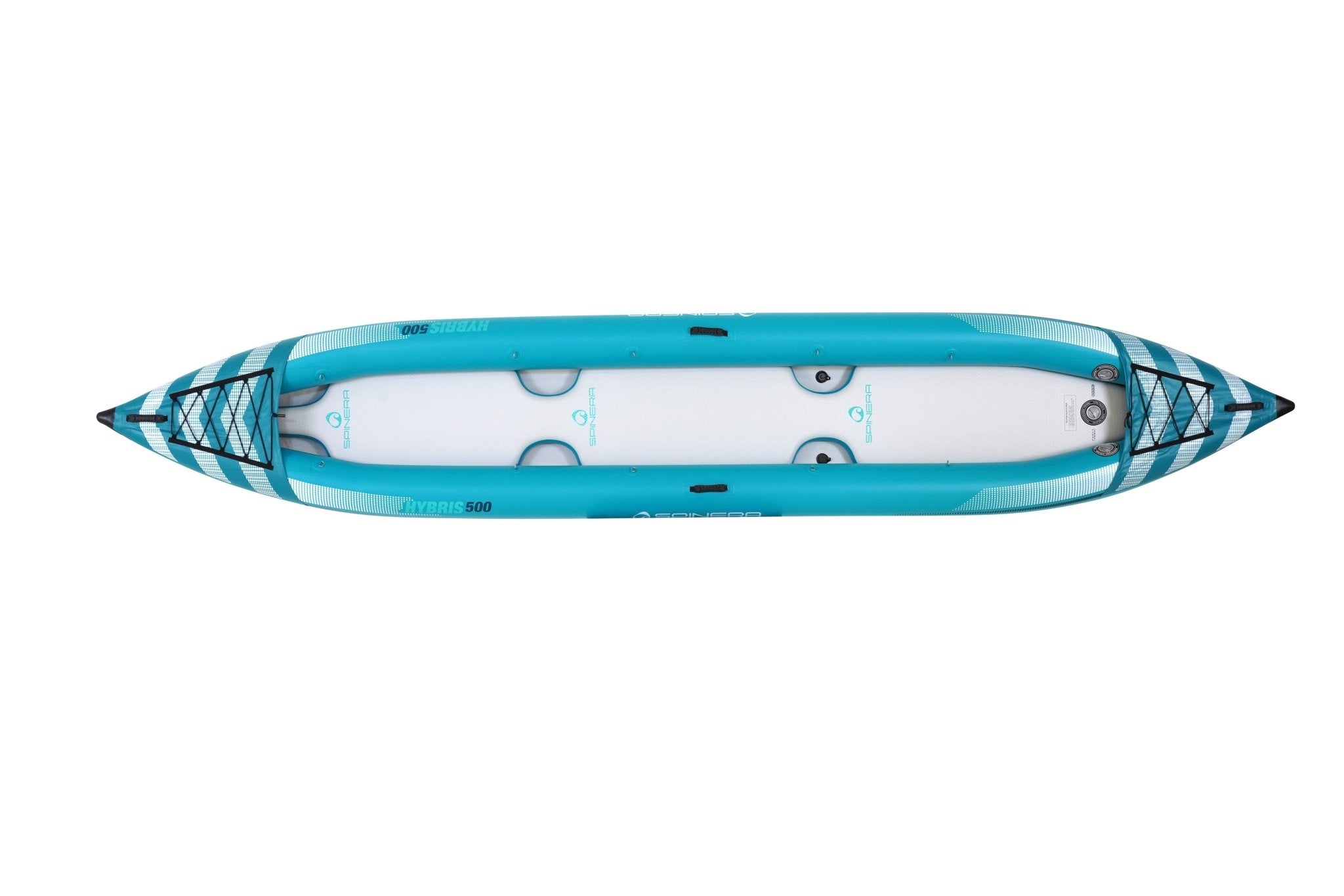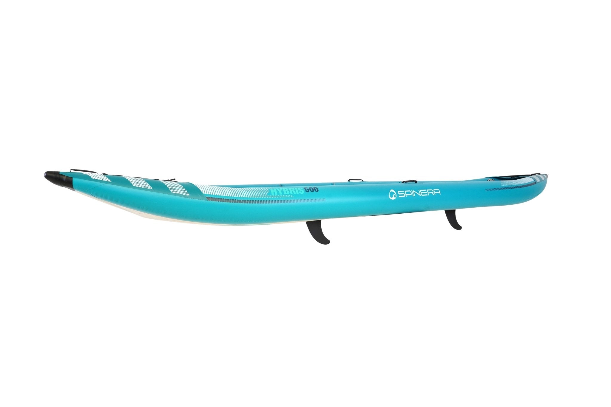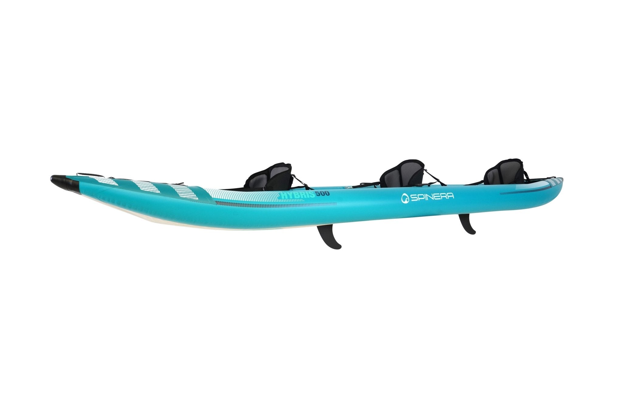 Das Hybris 500 ist ein 3-Kayak aus hochwertigen Materialien. Das Boot bietet gut Platz für drei Erwachsene. Die Siderails aus verstärktem PVC sorgen für eine hervorragende Stabilität und der Tarpaulin Boden schützt das Boot gegen Abreibung und harte Gegenstände. Die Sitzfläche besteht aus 8cm HDDS - High Density Drop Stitch Floor und sorgt für zusätzliche Stabilität. Bug wie Heck sind mit Spritzschutz ausgerüstet und bieten Platz für kleinere Gepäckstücke. Die zusätzlichen Gepäcknetze bieten zudem Platz für weiter Dinge, die schnell greifbar sein müssen. Die schlanke Form des Bootes mit einer Breite von 90 cm ermöglichen ein flüssiges vorwärtskommen. Die 2 Finnen des Hybris 500 sorgen zudem für einen hervoragenden Geradeauslauf. Das Hybris ist die ideale Wahl für den Weekend-Ausflug oder die längere Tour auf Seen und ruhigen Flüssen. Der mitgelieferten Sitze und die Stautasche sind hochwertig gemacht. Ein geeignetes Paddel muss seperat ausgesucht werden und ist nicht im Lieferumfang enthalten.