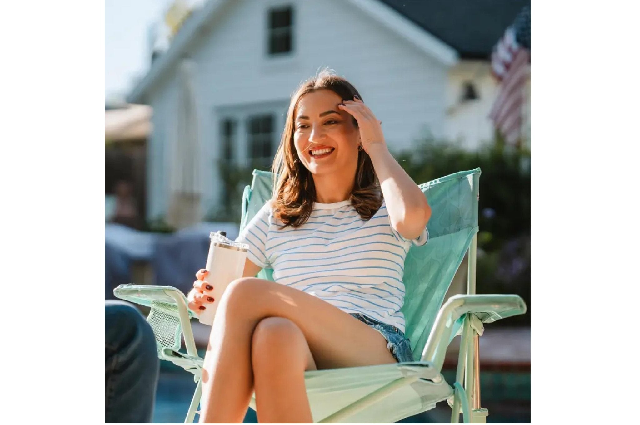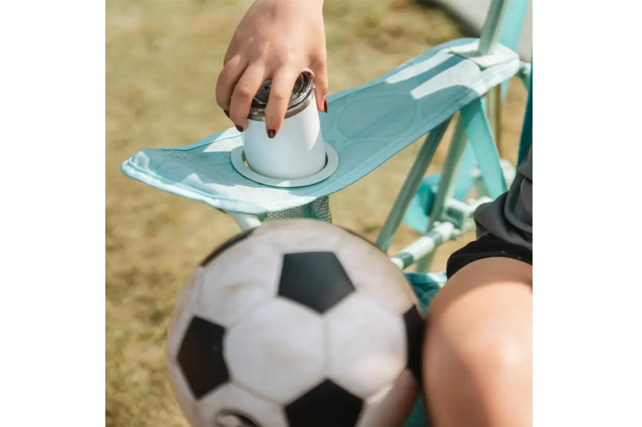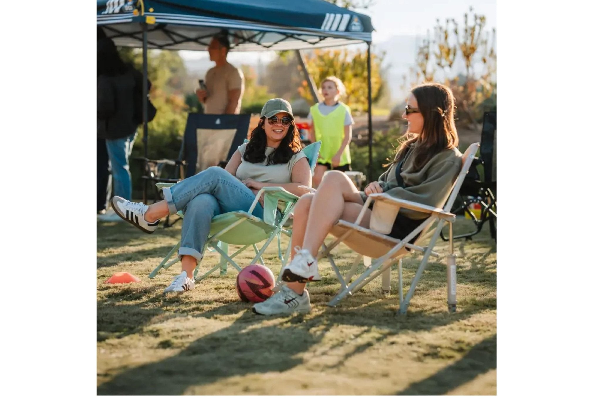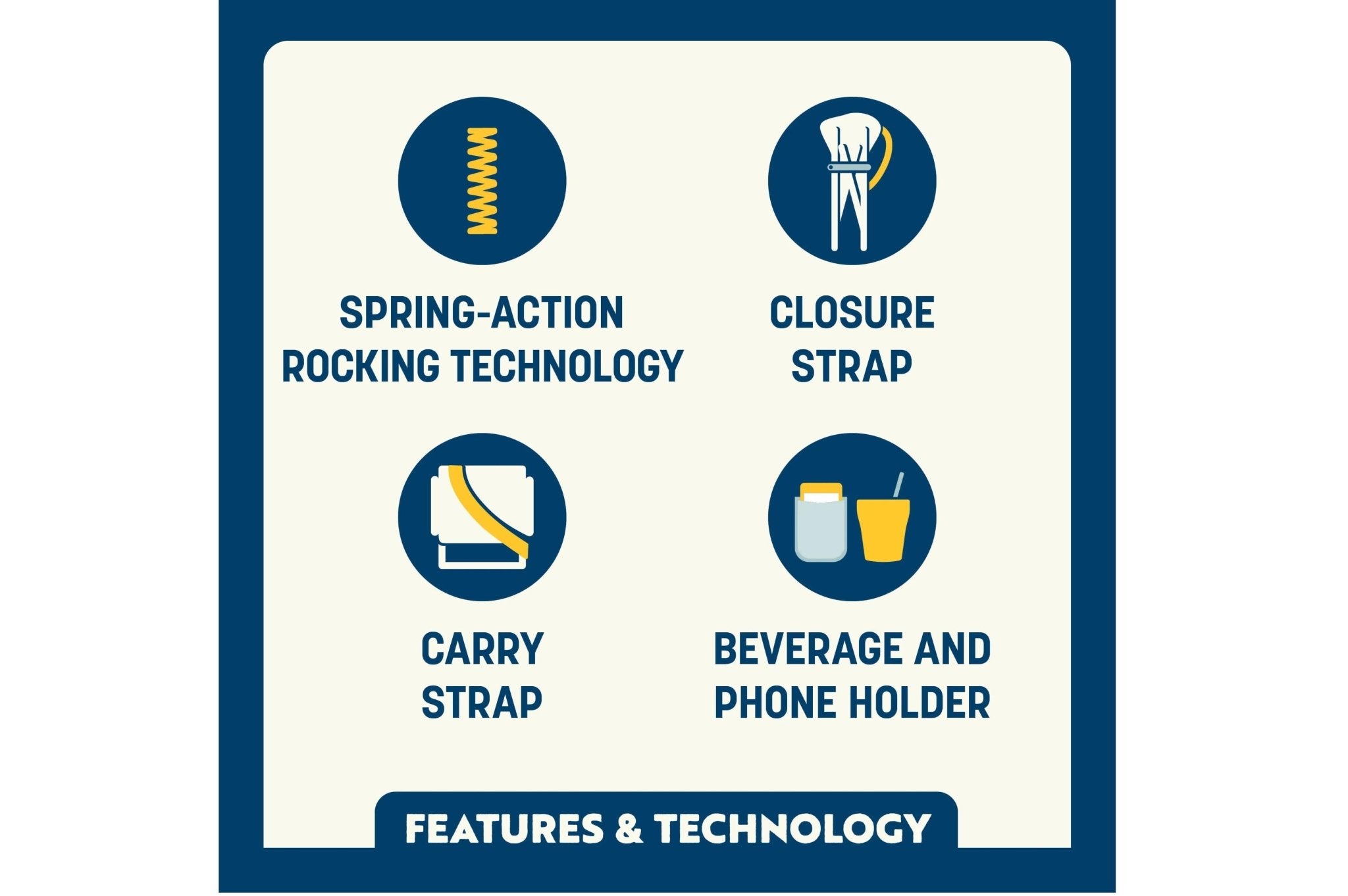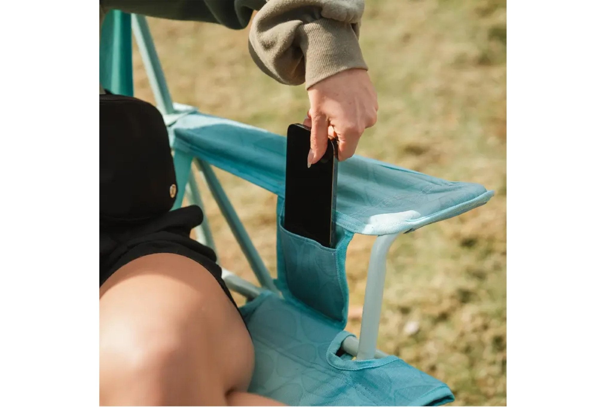 Schaukelstuhl für draußen: Der Kickback Rocker mit Tragegurt. Du suchst nach einem Schaukelstuhl für draußen, der dir sowohl Komfort als auch Mobilität bietet? Dann ist der Kickback Rocker genau der Richtige für dich. Der Kickback Rocker ist ein mittelgroßer Schaukelstuhl, der etwas niedriger als normale Stühle, aber höher als bodennahe Stühle sitzt. Das macht ihn zum perfekten Stuhl zum Zurücklehnen und Entspannen. Er verfügt über die patentierte Spring-Action Rocking Technology™, die dir ein sanftes Schaukelerlebnis auf flachen, harten und weichen Untergründen ermöglicht. Außerdem ist er als taschenloser Stuhl konzipiert und hat einen integrierten Tragegurt und ein Schlaufen- und Stiftverschlusssystem. So kannst du ihn schnell und einfach auf- und abbauen. Weitere Merkmale sind ein Getränkehalter und eine Handytasche, die dir noch mehr Komfort bieten.