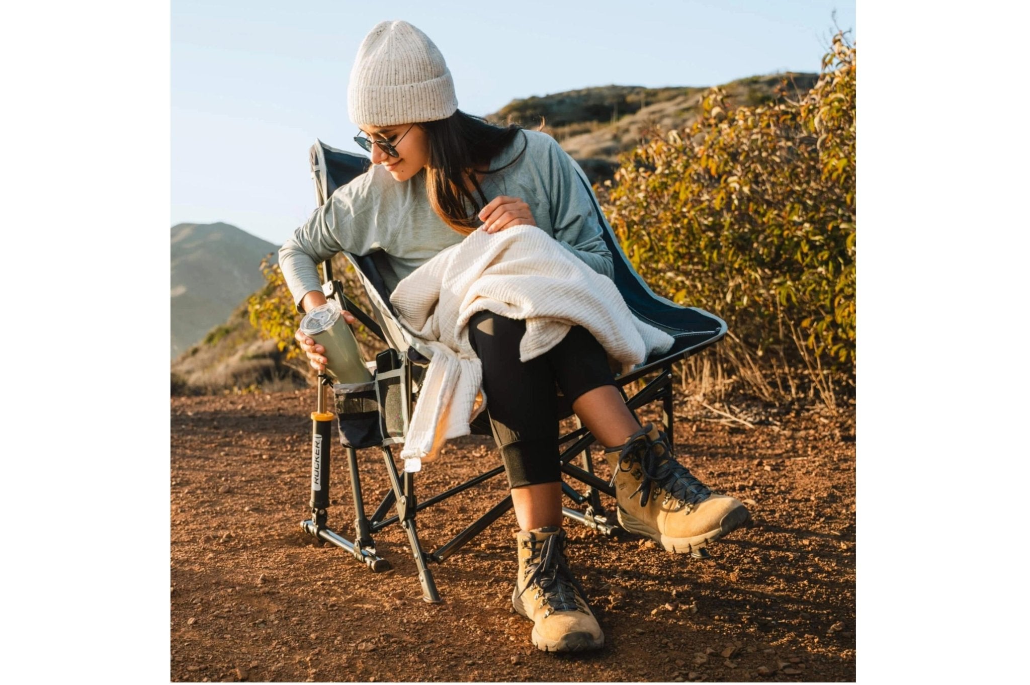 Der Pod Rocker ist ein komfortabler, tragbarer Schaukelstuhl, der dir ein angenehmes Schaukeln im Freien ermöglicht. Er verfügt über eine strukturierte Sitzfläche, die dir Halt bietet, ein Mesh-Panel, das für Belüftung sorgt, und eine Seitentasche, in der du dein Handy und andere wichtige Dinge verstauen kannst. Die patentierte Spring-Action Rocking Technology™ sorgt für eine sanfte Schaukelbewegung auf jedem Untergrund – vom Rasen bis zum Strand.