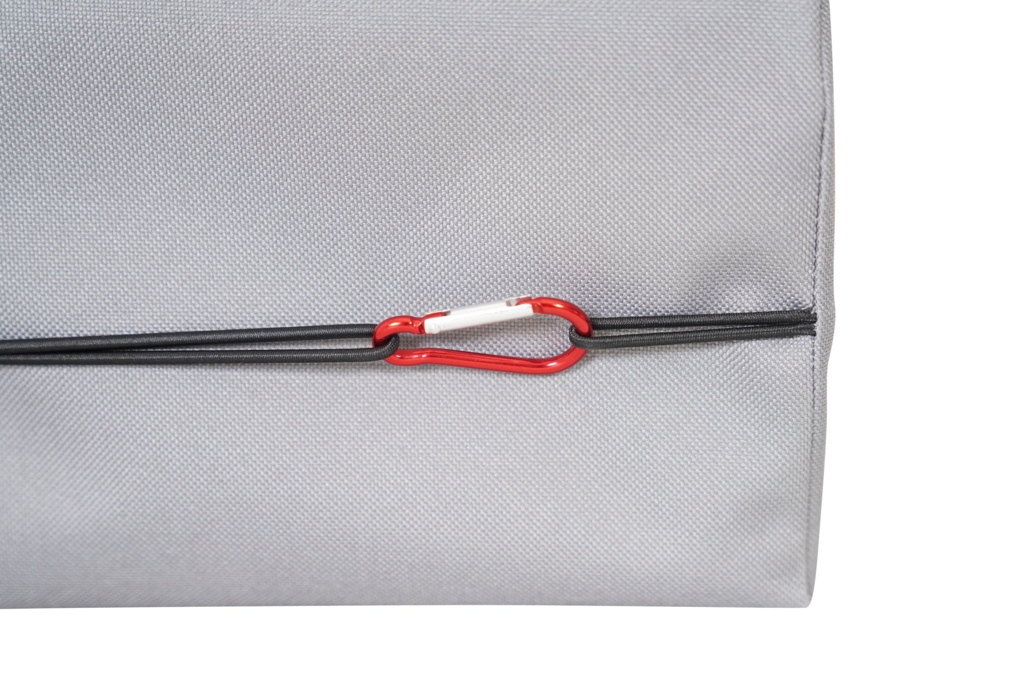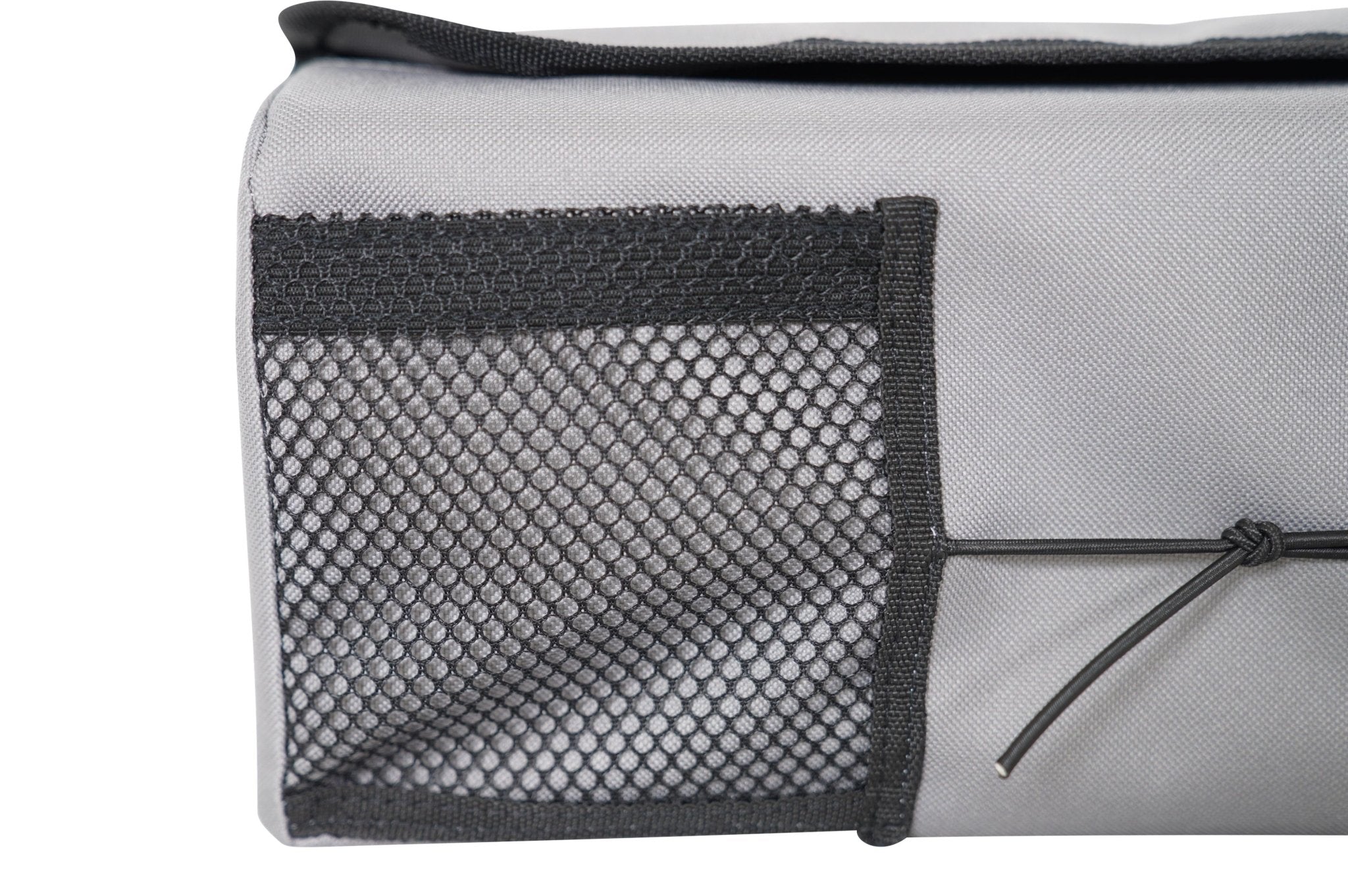 Das Regal kann einfach, auch bei geschlossenem Dach, aus dem Halter entnommen werden. So kannst du das Smutje zum Grillen mit ins Freie nehmen. Im Inneren sorgen Gummiseile dafür, dass nichts verrutscht und ein Filzboden unterbindet störendes Klappern während der Fahrt. Unterhalb des Regals kann eine Küchenrolle eingehängt werden. Der Gummizug sorgt dafür, dass diese immer gegen den Boden des Regals gedrückt wird, so dass diese sich nicht ungehindert abrollen kann. Der Alubody ist mit einem strapazierfähigem Oxfordgewebe umspannt. Verschlossen wird das Smutje mit Magnetverschlüssen, so dass nichts nach vorne herausfallen kann.