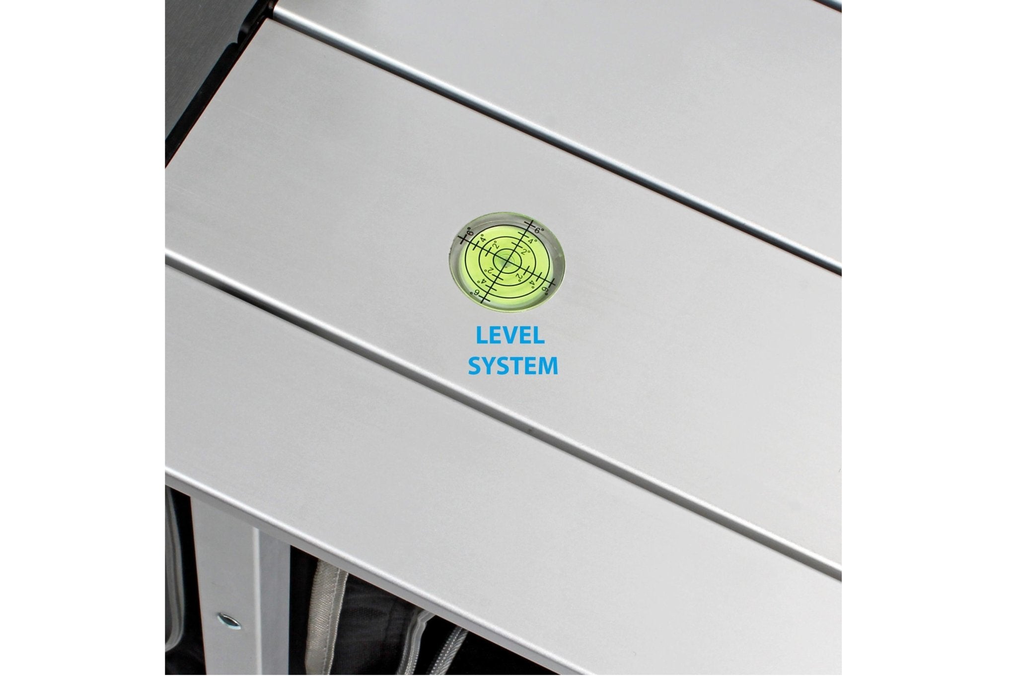 Neu gestaltete Küchenbox mit extra stabiler Klappstruktur aus quadratischem Aluminiumprofil. 2 separate Schränke bieten viel Stauraum für Lebensmittel und Kochgeschirr. Zum Lieferumfang gehören ein Wind- und Spritzschutz sowie eine praktische Tragetasche.