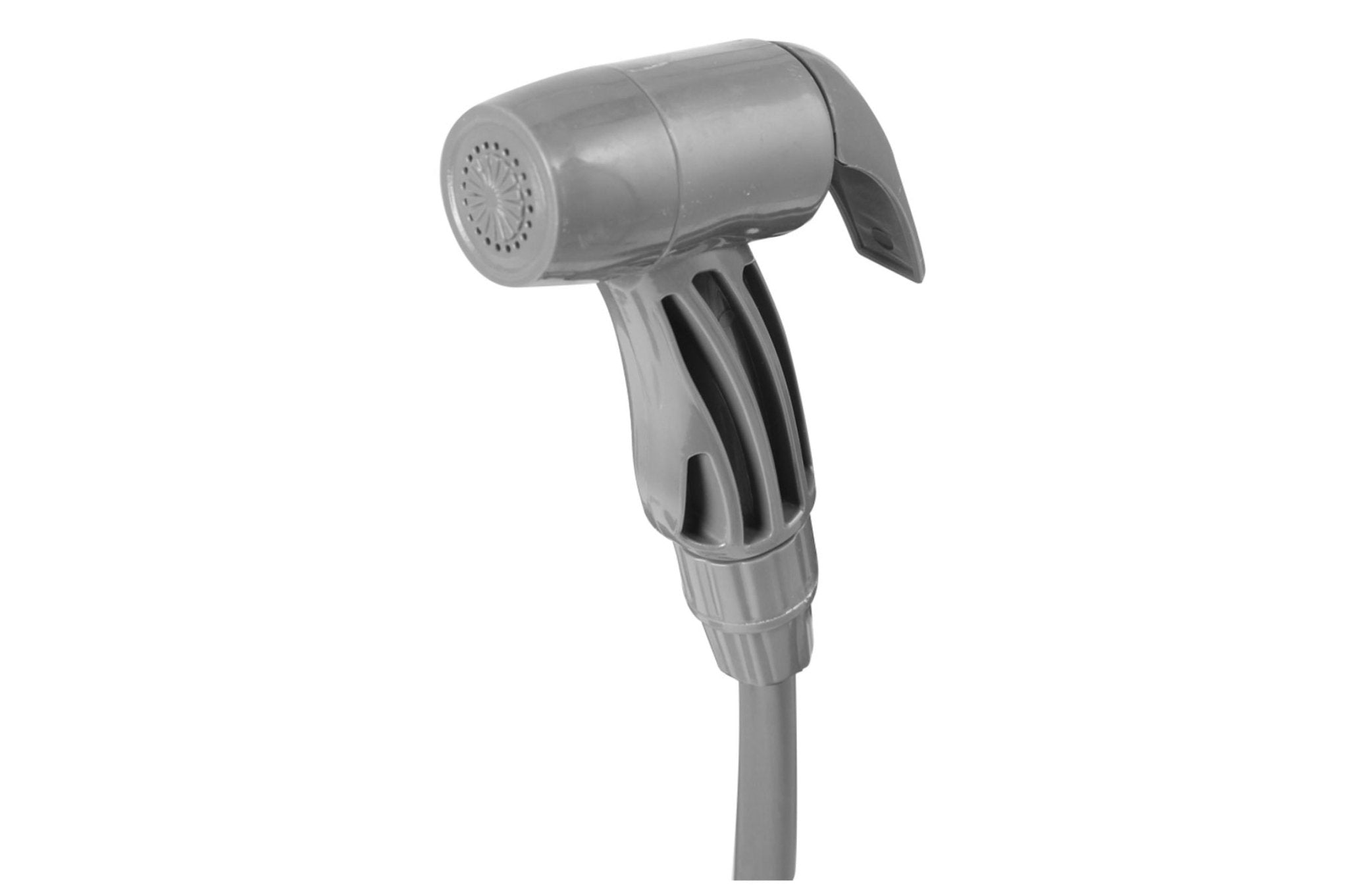 • Regulierbarer Duschkopf, 1,95 m langer Schlauch; nicht zum Aufhängen geeignet wie herkömmliche Solarduschen.