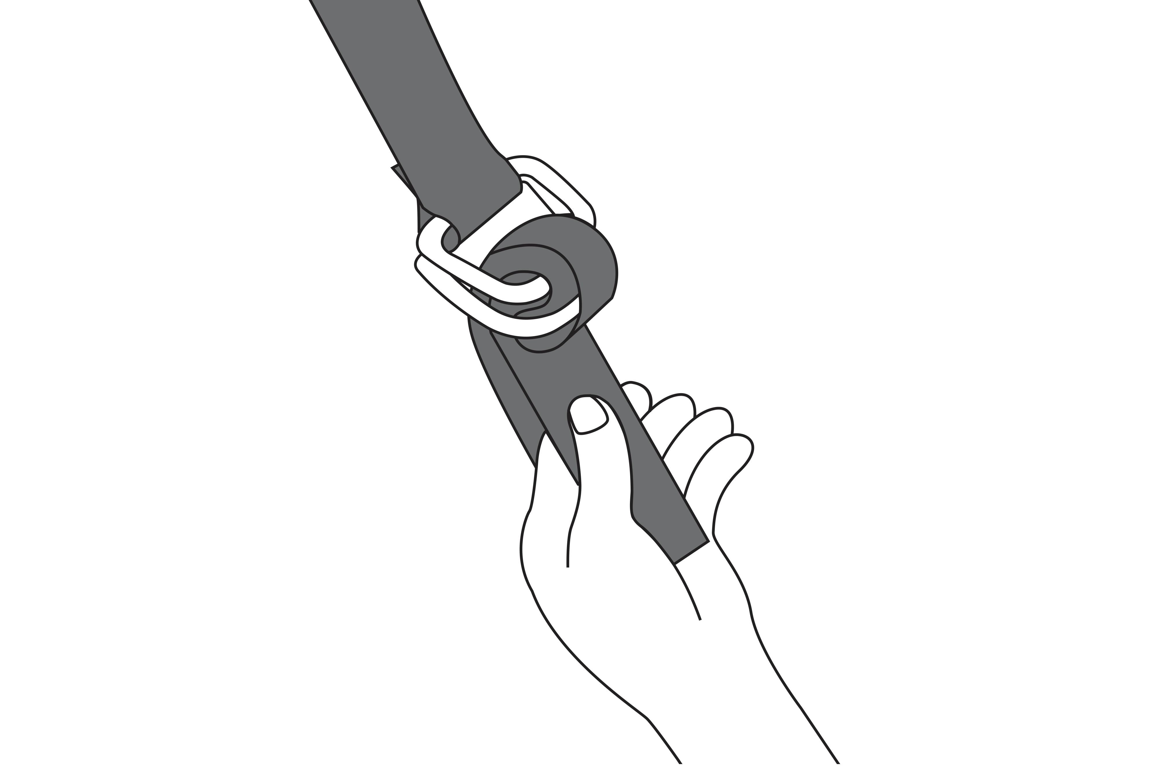 Dachhalteband zur Stabilisierung von Markisen und Vorzelten. Das Set besteht aus einem Stabilisierungsband (13 Meter) samt Spannfeder und großen Befestigungsheringen.