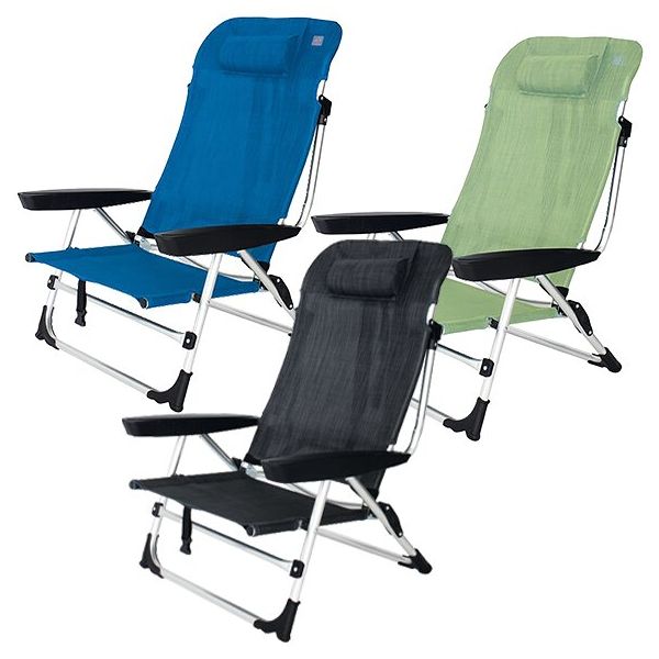 Das leichte, aber stabile Aluminiumgestell macht den Stuhl einfach transportierbar. Dank gepolstertem Kopfkissen und integrierten Schultergurten ist er im zusammengeklappten Zustand bequem wie ein Rucksack tragbar.