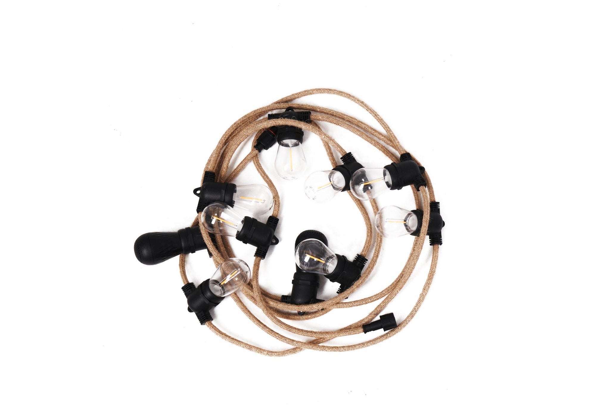 • Stimmungsvolle Beleuchtung: 5 Meter Lichterkette mit 10 E27/E26-Fassungen, umwickelt mit Hanfseil.