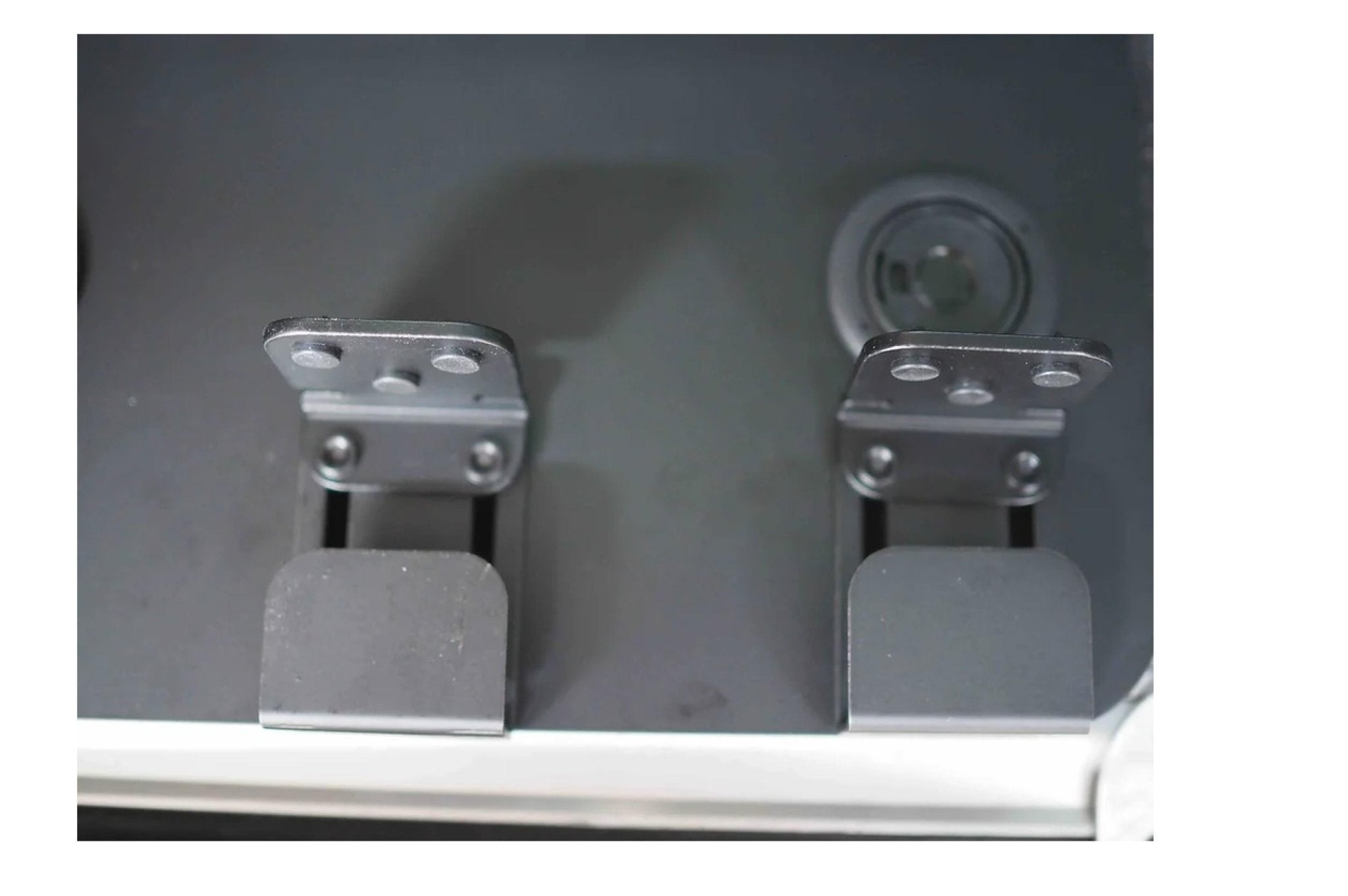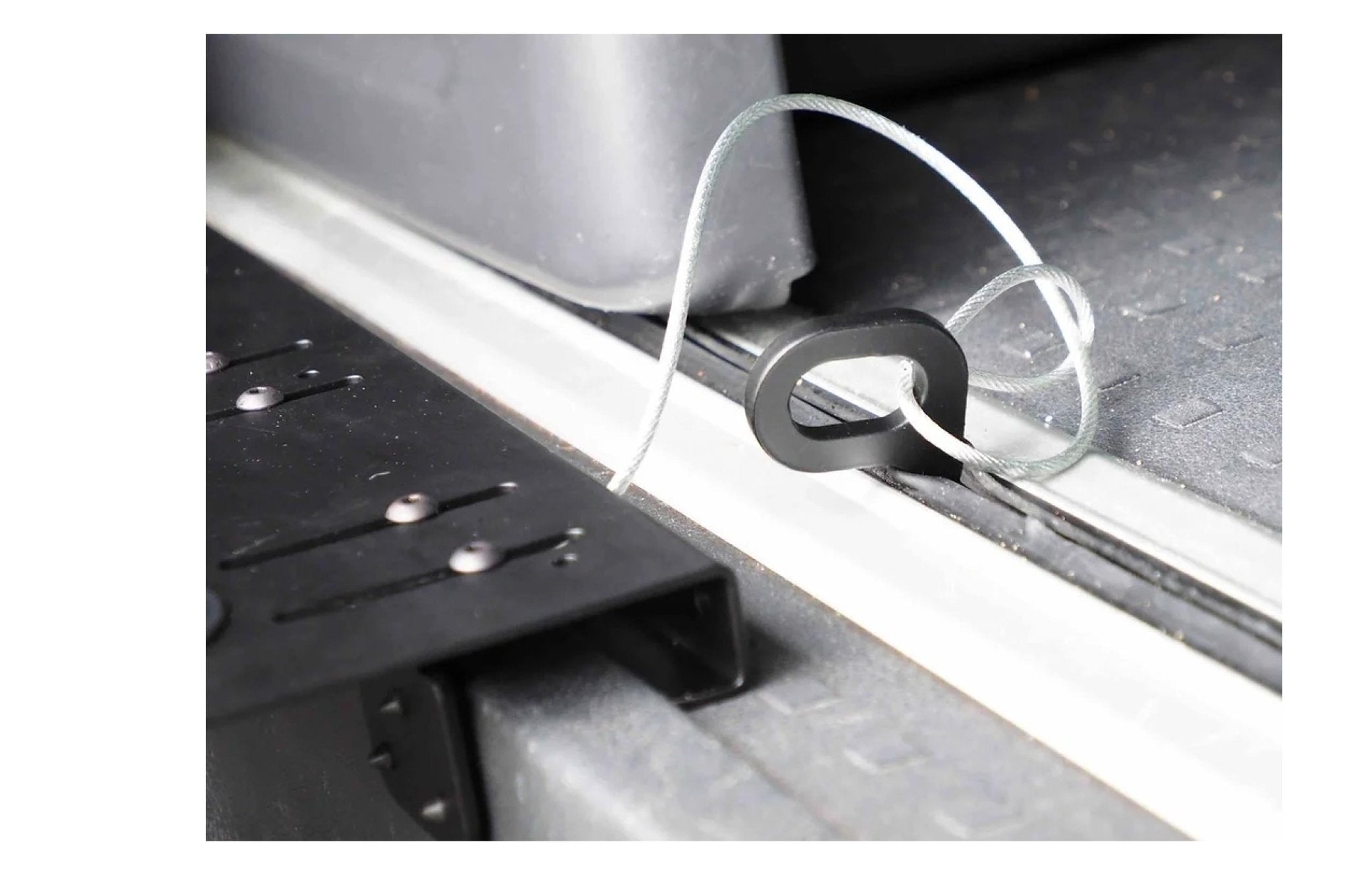 Unser Regal wird nicht einfach unter die Kunststoffverkleidung der Trittstufe geschoben. Stattdessen haben wir dem Stuva zwei Aluwinkel mit EPDM-Puffern hinzugefügt, die das Regal sicher gegen die Trittstufe klemmen. Dadurch bleibt das Stuva auch auf unwegsamem Gelände rutsch- und kippfest.