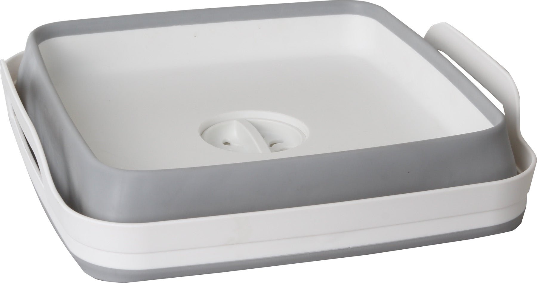 Faltbare Waschschüssel aus robustem Kunststoff mit integrierten Tragegriffen und verschließbarem Bodenablauf. Dank Fold-Away System sehr kompakt faltbar und platzsparend transportierbar.