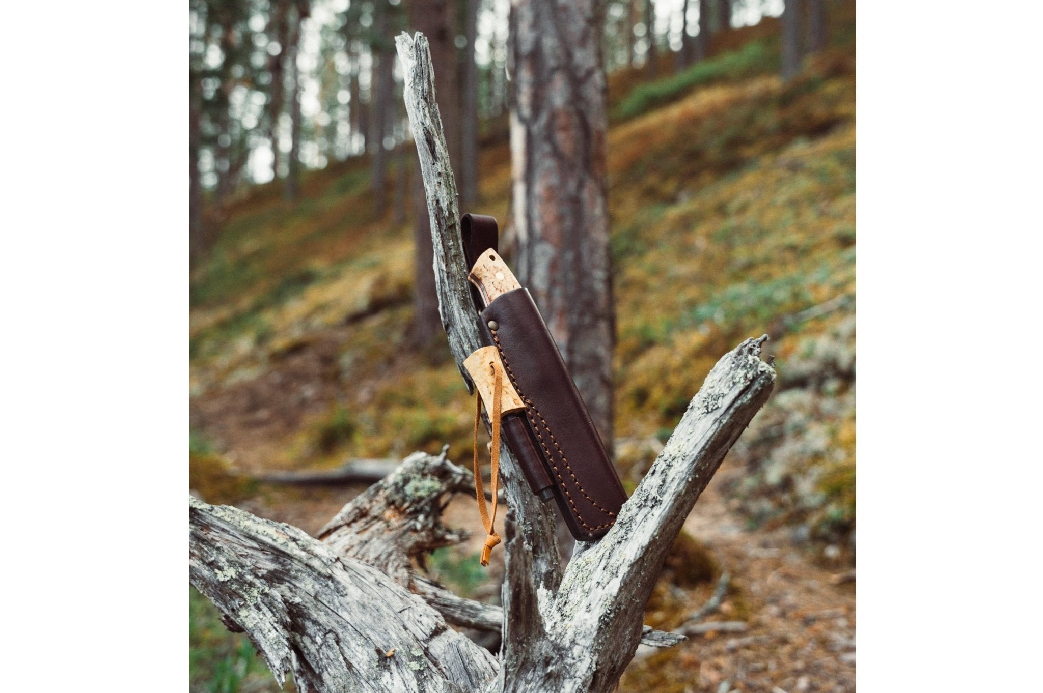 Dieses leistungsstarke Messer besteht aus stabilisiertem, gewelltem Birkenholz. Es ist 210 mm lang und 148 g schwer. Die Klinge ist 95 mm lang und 3,6 mm dick, wobei sie eine Breite von 26 mm aufweist. Das Messer ist aus O1/K460 Carbonstahl gefertigt und verfügt über ein Scandi-Schleifenprofil. Es kommt mit einer Bushcraft 95 Scheide, die die Aufbewahrung und den Transport des Messers erleichtert. Nach Gebrauch wird empfohlen, das Messer zu reinigen und zu fetten, um Rostschutz zu gewährleisten. Im Lieferumfang enthalten sind das Messer und die Scheide.
