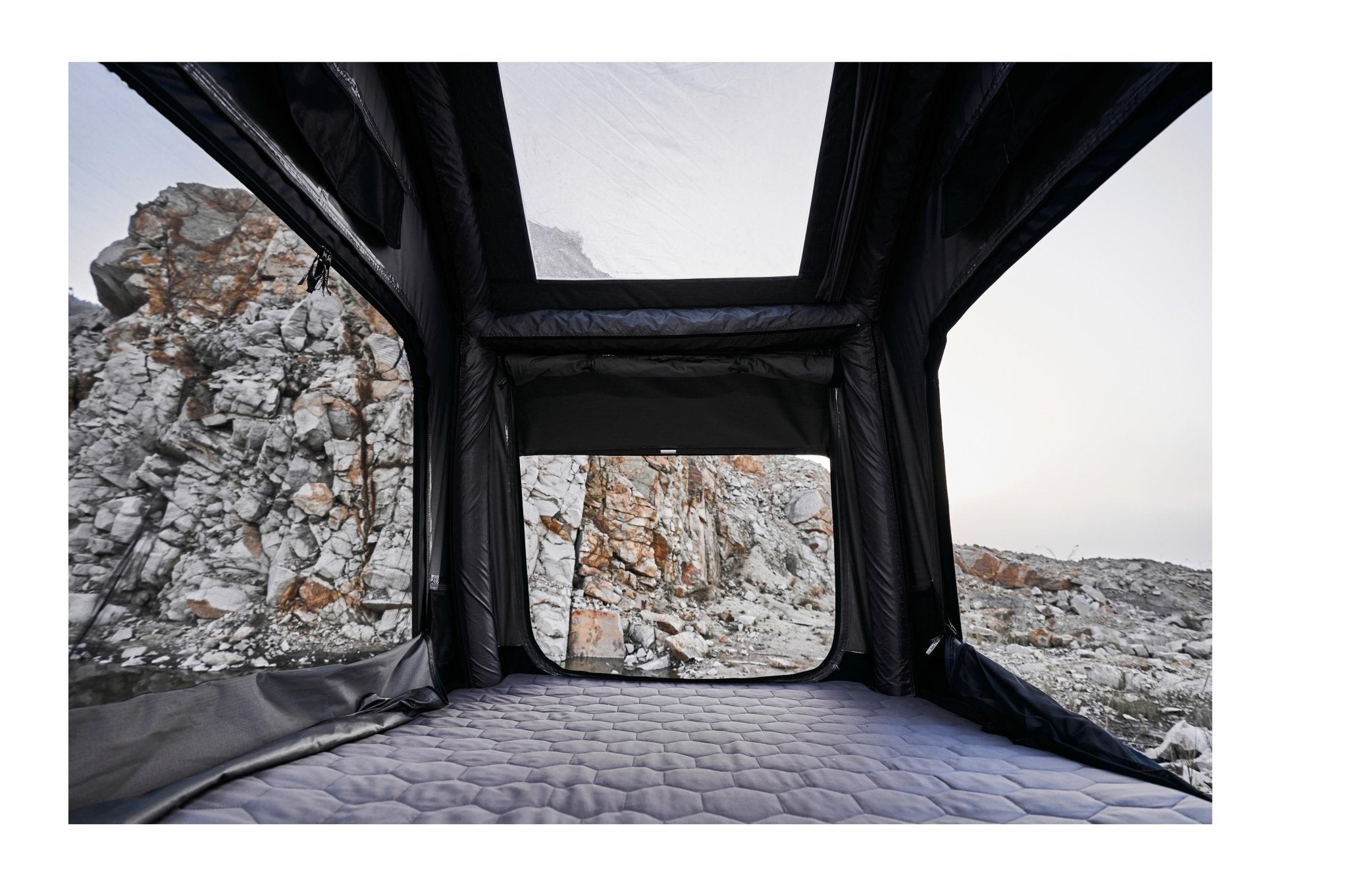 Entdecke das bahnbrechende neue Wild Land Klapp-Dachzelt – das ultimative Abenteuer-Erlebnis! Mit seinem patentierten Design bietet es unschlagbaren Komfort und Schutz, dank des stabilen und zuverlässigen aufblasbaren Luftschlauchsystems, das sich in Sekundenschnelle mit der integrierten elektrischen Pumpe aufstellen lässt. Dieses Dachzelt passt auf fast alle Autos und bietet Flexibilität für deine Abenteuer, ob SUV, Geländewagen oder Kompaktwagen. Genieße die Natur durch zwei große, verschließbare Dachfenster und beeindruckende Aussichten durch die Panorama-Hauptöffnung und drei große Seitenfenster. Mit einem Gewicht von nur 47,5 kg (ohne Leiter) ist es kompakt und leicht. Die Leiter ist einfach demontierbar und leicht zu verstauen. Erlebe hervorragenden Schlafkomfort auf der 5 cm dicken Matratze mit thermischer Abdeckung. Eingebaute, dimmbare LED-Lichter sorgen für eine gemütliche Beleuchtung