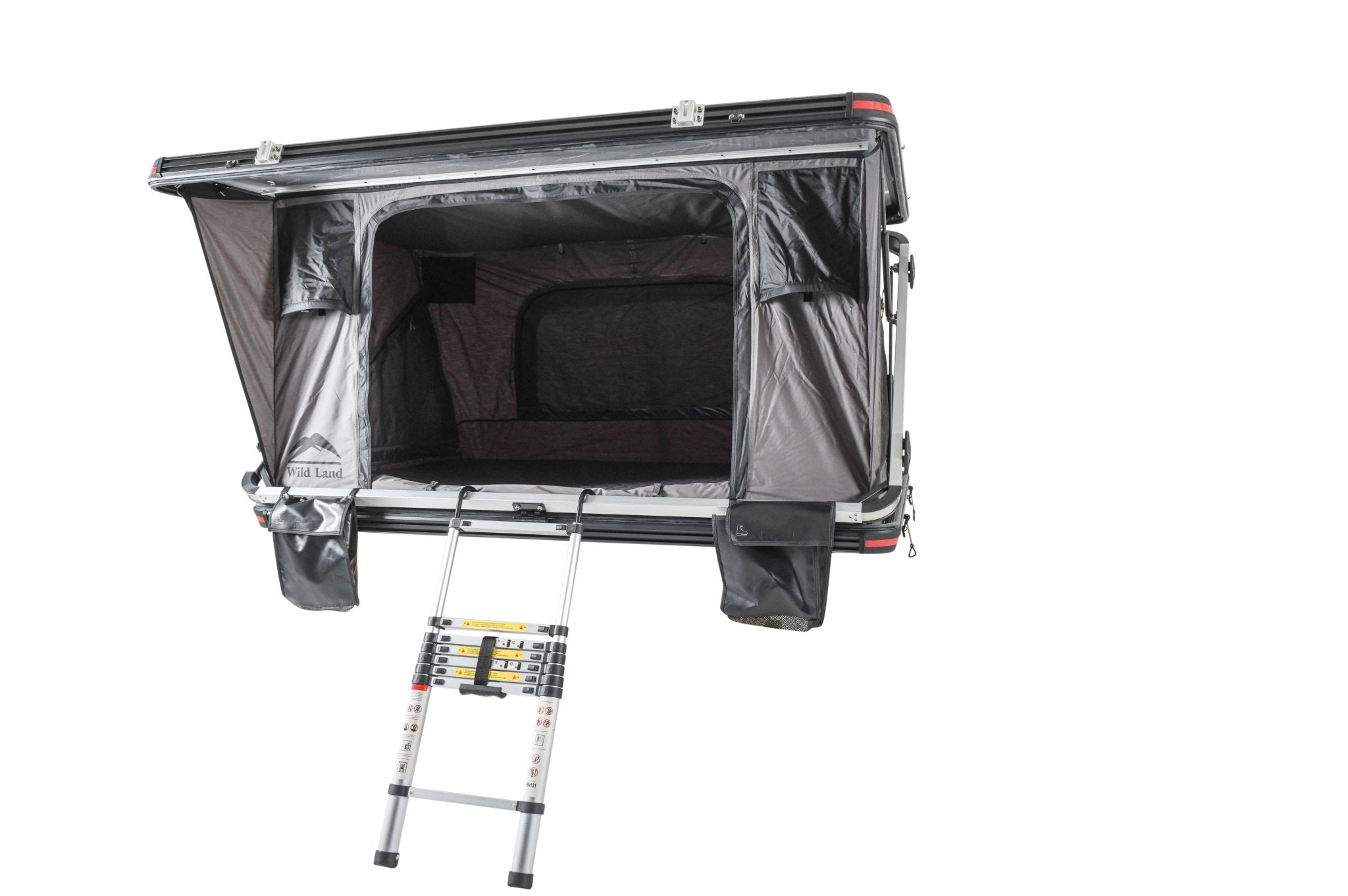 Das Z-Shape ist das Autodachzelt von Wild Land mit einem Hardtop und einem massiven Aluminium-Frame. Das Z-Shape ist ein kompaktes, flaches und sehr schnell aufgestelltes Dachzelt für 2-3 Personen. Es ist wie viele Wild Land Dachzelte aus hochwertigem 210D Rip-Stop Polyoxford mit einer PU3000mm Beschichtung ausgestattet. Dazu ist der ausgesetzte Aussenstoff zusätzlich mit einem UPF 50+ Filter versehen. Durch den UPF Filter wird der Stoff nachhaltig geschützt und behält die wichtigen Funktionen. Das Dachzelt ist in nur wenigen Minuten und mit wenigen Handgriffen in 2-4 Minuten aufgestellt. Die Mechanik mit den beiden Gasdruckzylindern stellt das Aufklappen ganz ohne Mithilfe sicher. In fahrendem Zustand darf das Dachzelt, die im Fahrzeugausweis des KFZ notierte Dachlast nicht überschreiten. Im Lieferumfang ist auch eine Lampe zur Befestigung am Zelt sowie 2 Lastenträger die auf dem Deckel befestigt werden können.